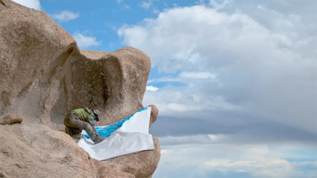 在美术馆6号展厅内放映的影像作品《无蔽之地》时长47分钟,讲述了艺术家在新疆阿尔金山的“行走绘画”。在经历了西藏阿里、内蒙古额济纳旗、新疆罗布泊的几次跋涉后,他期盼与原始和神秘再次相遇,而陌生、未知、想象与忐忑依旧相随。