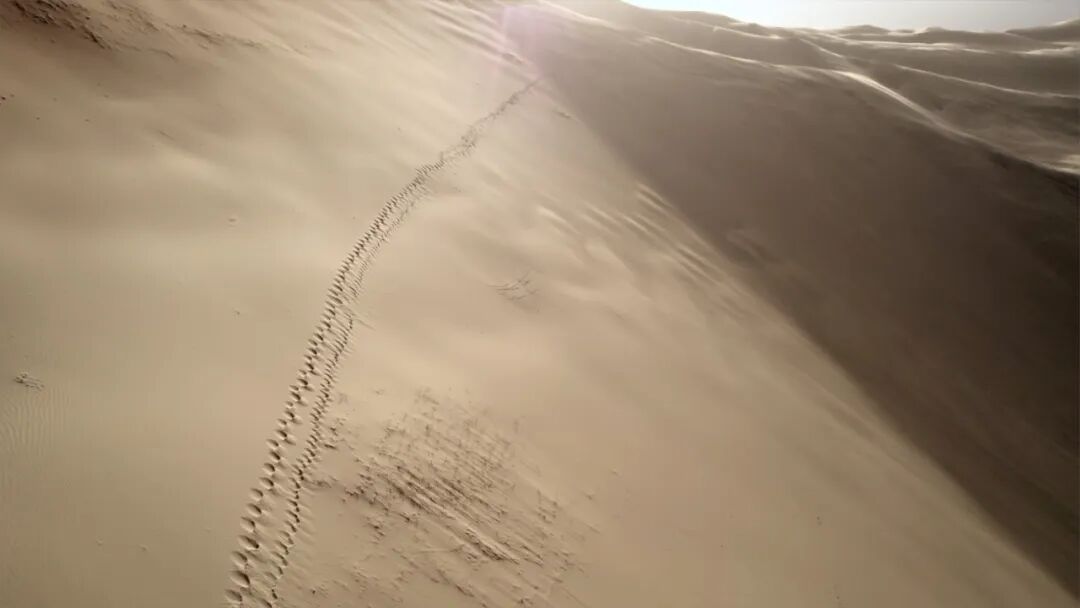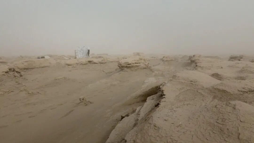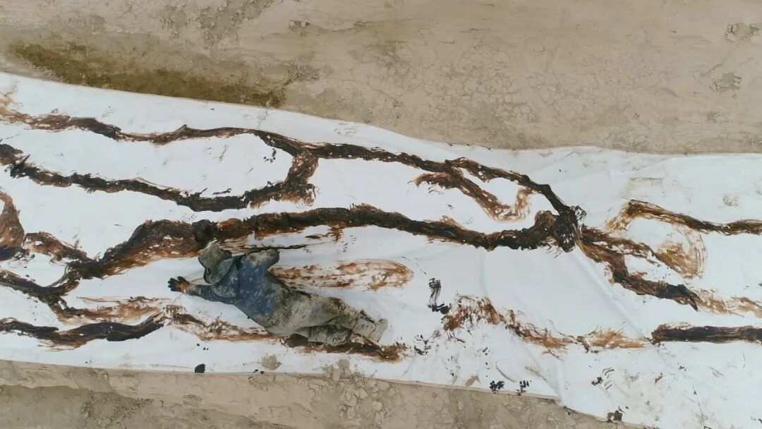 另外,在6号展厅中与《无蔽之地》同时循环放映的还有刘商英于2019年“行走”新疆罗布泊的影像作品——《荒原计划》,时长为46分钟。