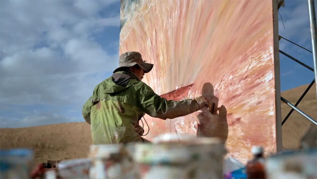 2021年7月,刘商英再一次“行走”至新疆阿尔金山无人区进行创作,诞生了《足迹》《彩虹》《沙子泉》系列、《祁曼塔格》系列等绘画作品。之后,刘商英完成了最新的影像作品《无蔽之地》
