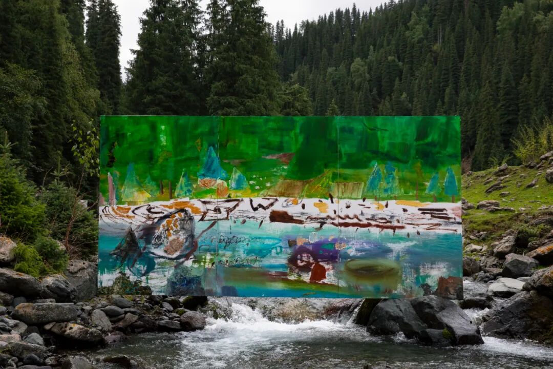 自2011年至今,刘商英先后多次深入西藏阿里、内蒙古额济纳旗、新疆罗布泊、阿尔金山、天山等地进行野外创作,并将其现场完成的绘画放置在所处的自然场域中展示,以此来探讨绘画与项目发生地之间的关系,并形成一种对话——“令绘画成为荒原,也让荒原成为绘画自身”。