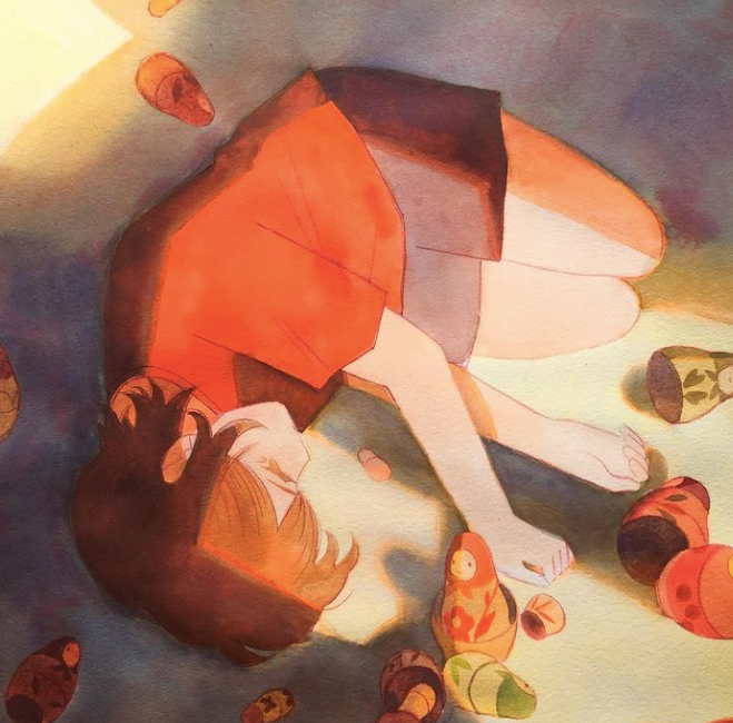 从透过窗帘的金色晨光,到在雨水打湿的城市街道上漫步,再到一个人前行的孤独背影,珍妮·优画出了非常浓的氛围感,也让人能清楚地感受到画中人物的情绪。