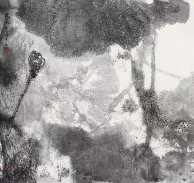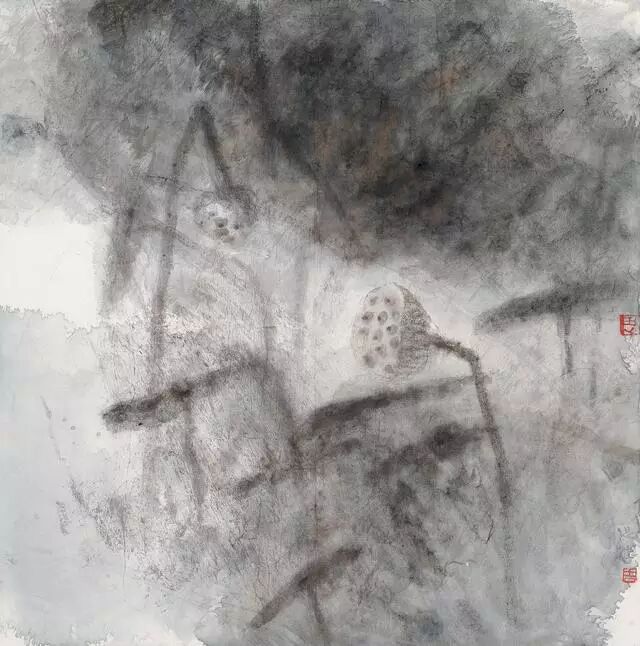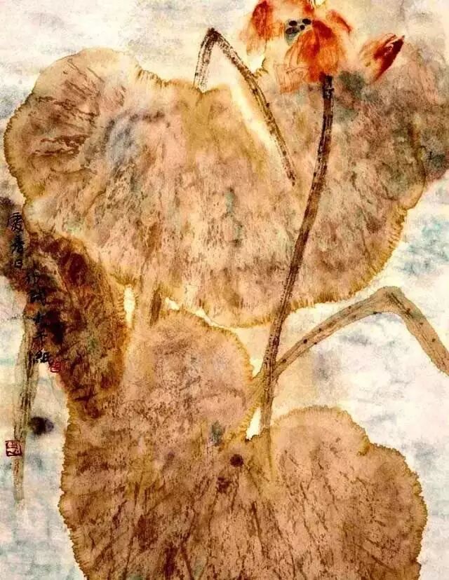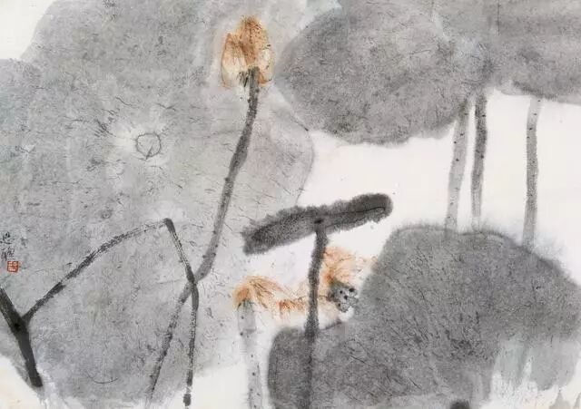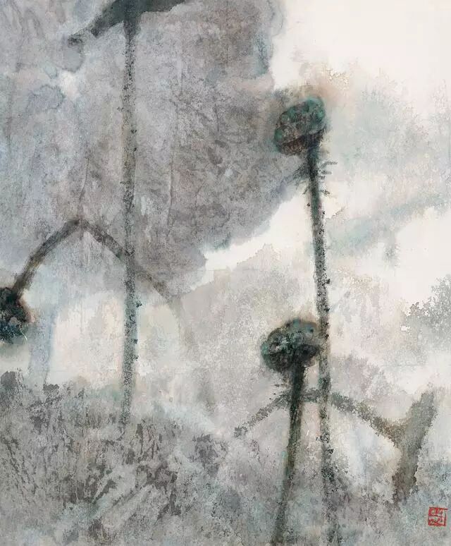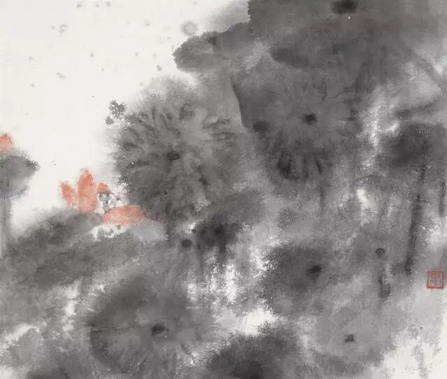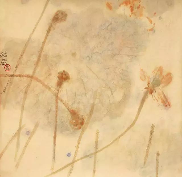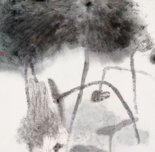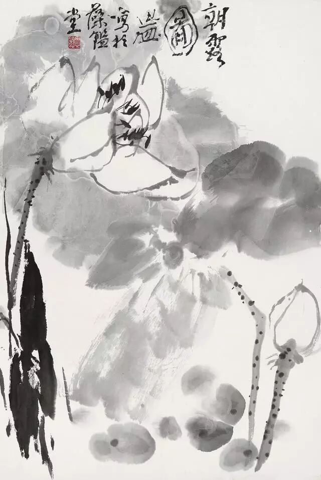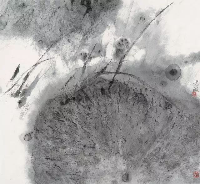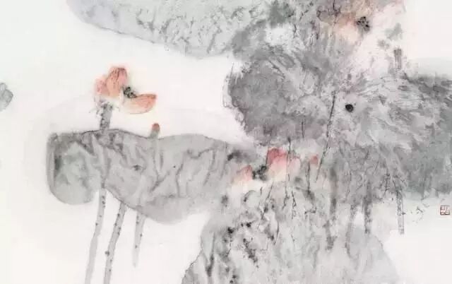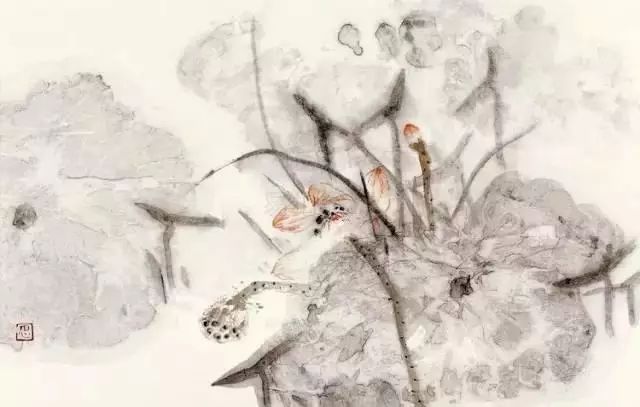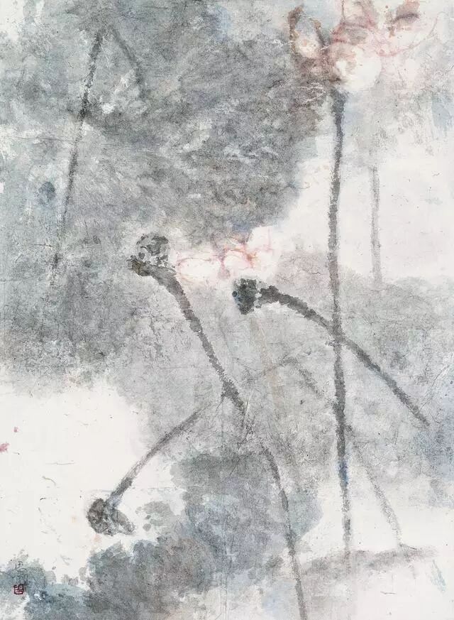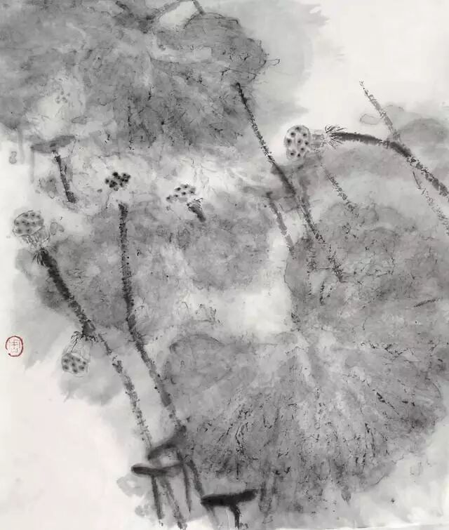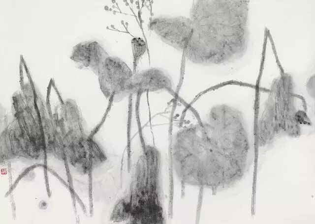 思聪画荷,没有明显的师承,也没有速写的积累,完全凭想象画。她早期的荷花,形象具体,比较写实,用色多,后来趋向于单纯,以墨为主,越画越虚。