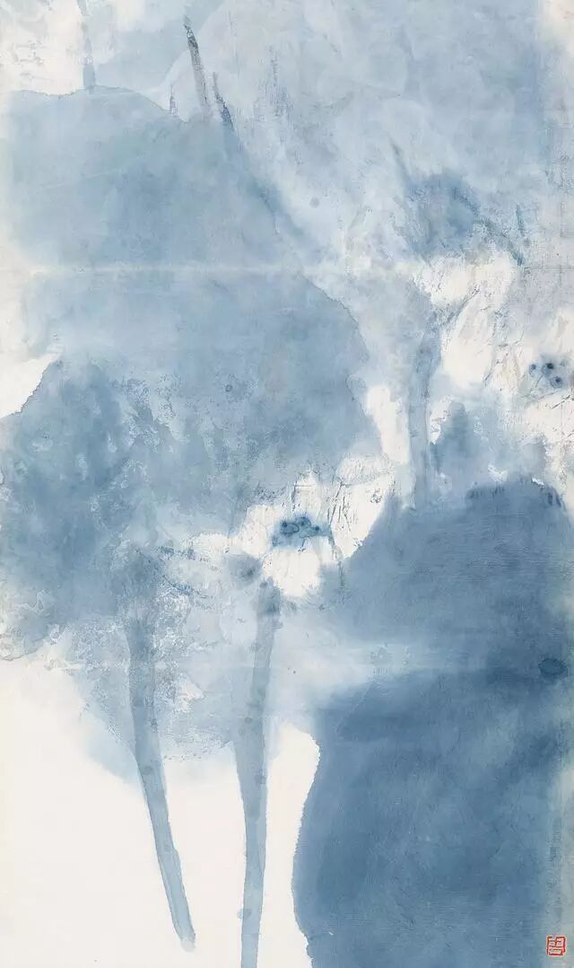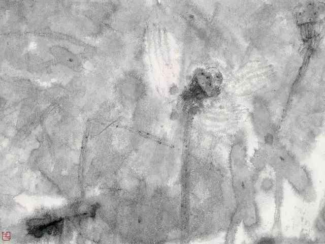 她用自己在长期实践中形成的独特技巧—用矾水做纸,墨与丙烯、广告黑混合使用,利用它们不同的渗透力,配合干笔皴擦产生微妙的肌理变化,创造了独特的似梦如幻、朦胧多变的画风。这是思聪向往的清净世界。