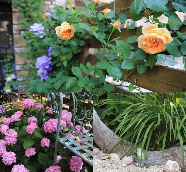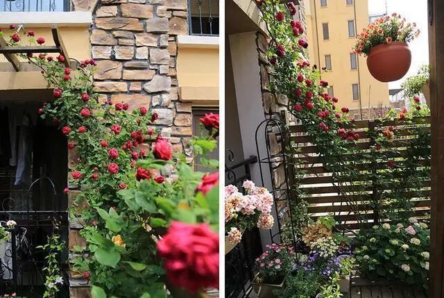 四周的栅栏下,都种植了爬藤月季,防盗又美观。