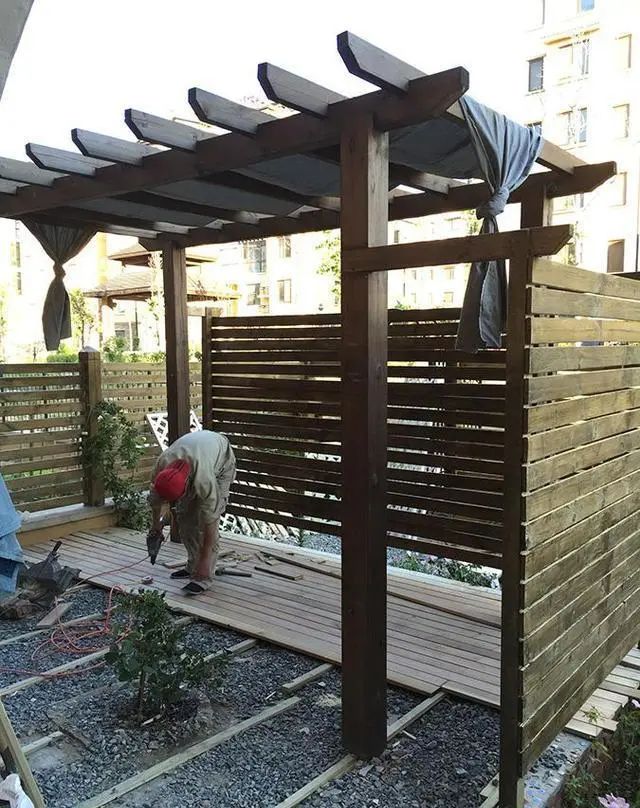 同时王先生,还在庭院里利用防腐木,