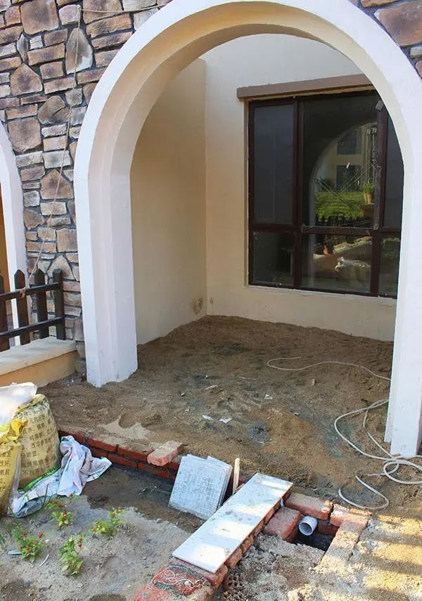 提前将内部的自来水管以及电线,从这里打洞引出;
