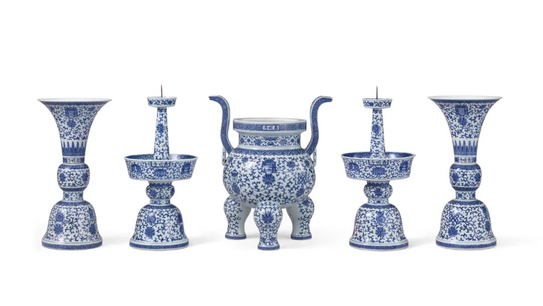 高度:42.6 cm(炉)、 47 cm(烛台)、 42 cm(花觚)
