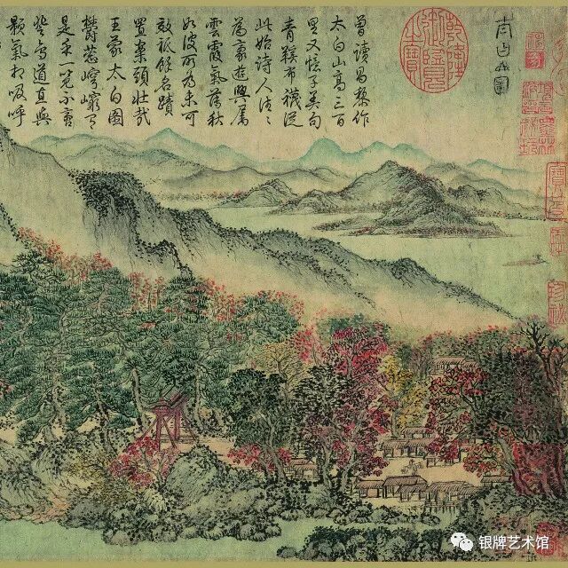 《太白山图》画浙江太白山天童寺及其周围景物,着重描绘天童寺前二十里夹径松林。