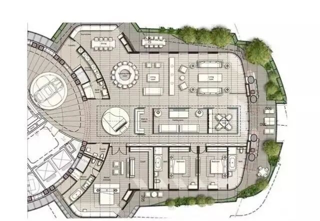 陶朱隐园特殊的结构设计,让每户住宅单元内都是无柱的开放空间,每位业主可以自由安排家居空间,也可以尽情地欣赏室外露台的植被景观。