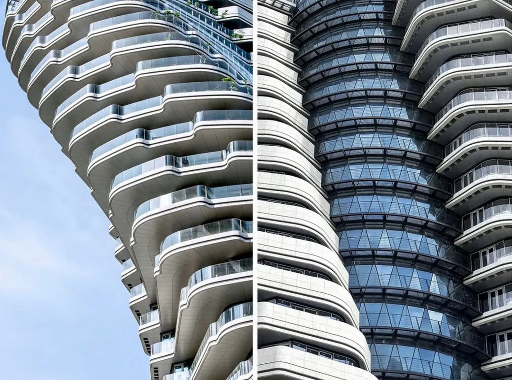 大楼特殊的90°扭转造型还在一定程度上参考了传统的太极理念。每层旋转4.5°的大楼结构,使得内部住户可以享有270°的全景观赏视野。