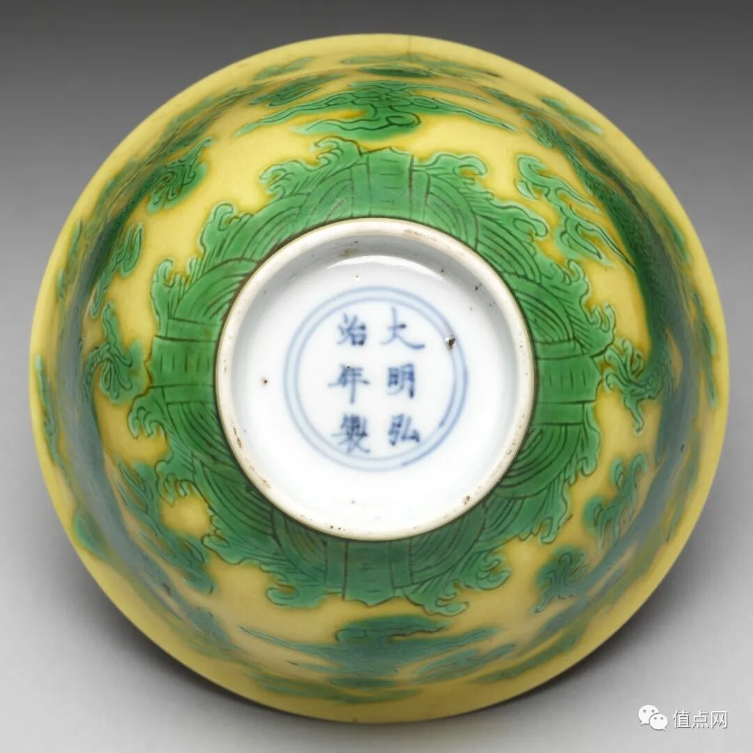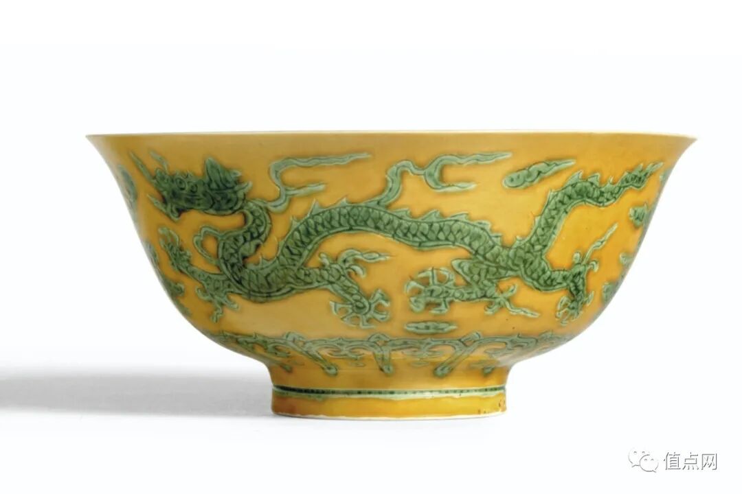明嘉靖 黄地绿彩「赶珠云龙」图碗|2013年,香港苏富比,估价270万 - 350万港元
