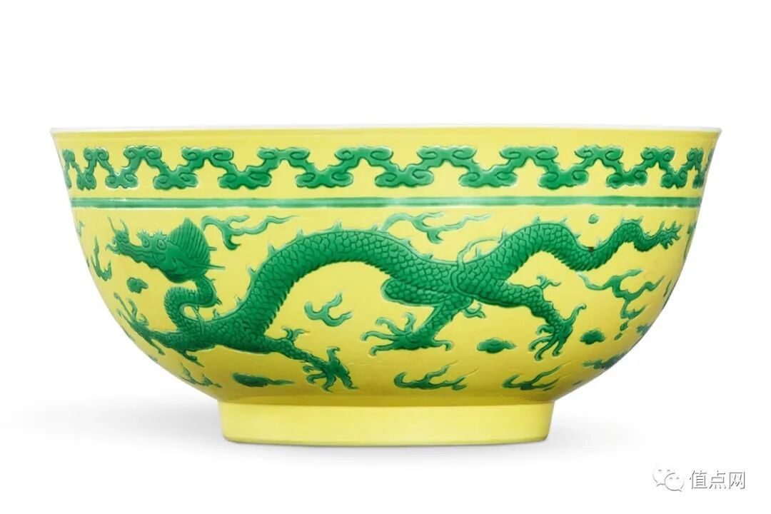 清雍正 黄地绿彩戏珠龙纹碗|2021年,香港苏富比,113万港元成交
