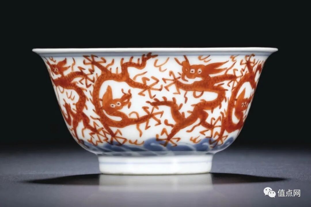 明隆庆 青花矾红「水波九龙」图小碗|2013年,香港苏富比,604万港元成交