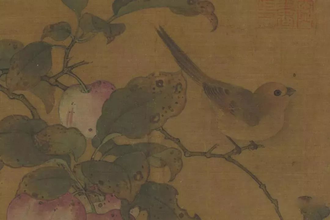 宋代的花鸟画家,对形象的观察入微,不仅形象细腻逼真,尤其充满了鲜活的情态。就如同这帧小品,能够传达出竹枝的弹性,以及三只鸟的亲密互动,让欣赏者的目光,深深为其所吸引。