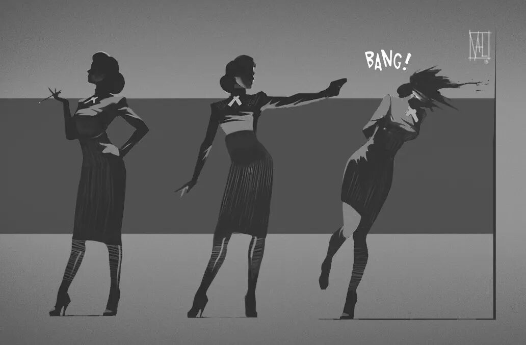 太对味了!动感黑白手绘剪影线稿,Valentin Demchenko近作分享-7.GAME