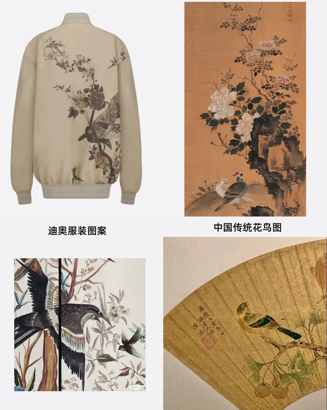 有网友发现,迪奥品牌最新发布的2022秋冬成衣新品系列中,数件衣服似乎印着中国传统花鸟画的样式。