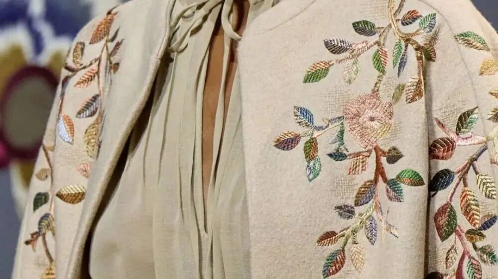 但欧洲刺绣与东方刺绣最大的不同也在于,东方刺绣善于运用各路针法逼真地表现花鸟、人物和风景,而欧洲刺绣善于运用不同的刺绣材料,珍珠、打磨后的贝壳、宝石、金属,绣线……,并不拘泥于材质,真丝、亚麻、棉、毛、甚至金属都被丰富地运用到刺绣之中。
