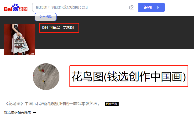 小优还特地在百度搜图里搜索了一下,识别后提示图中可能是花鸟图。