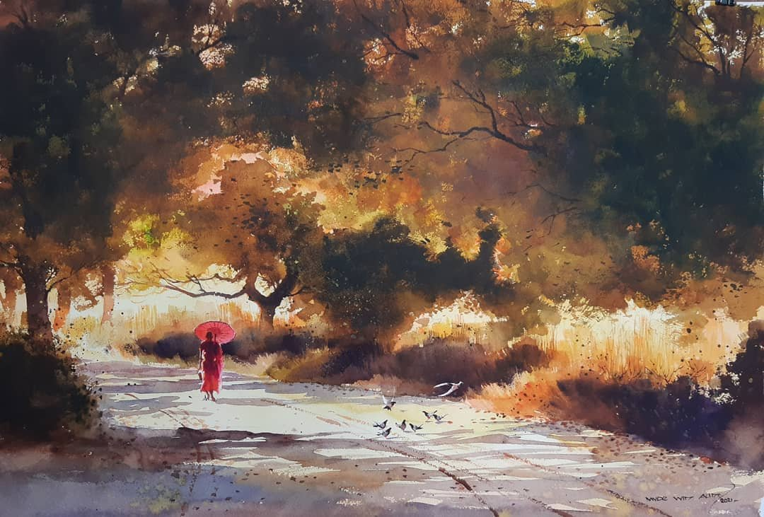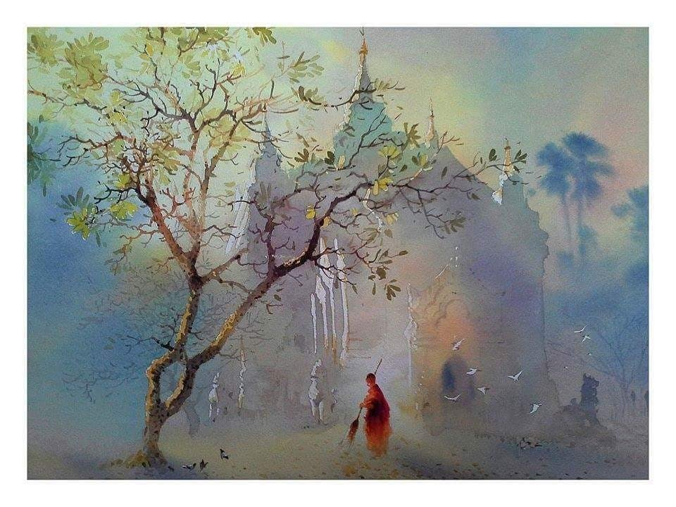 泰国艺术家Myoe Win Aung水彩绘画作品欣赏