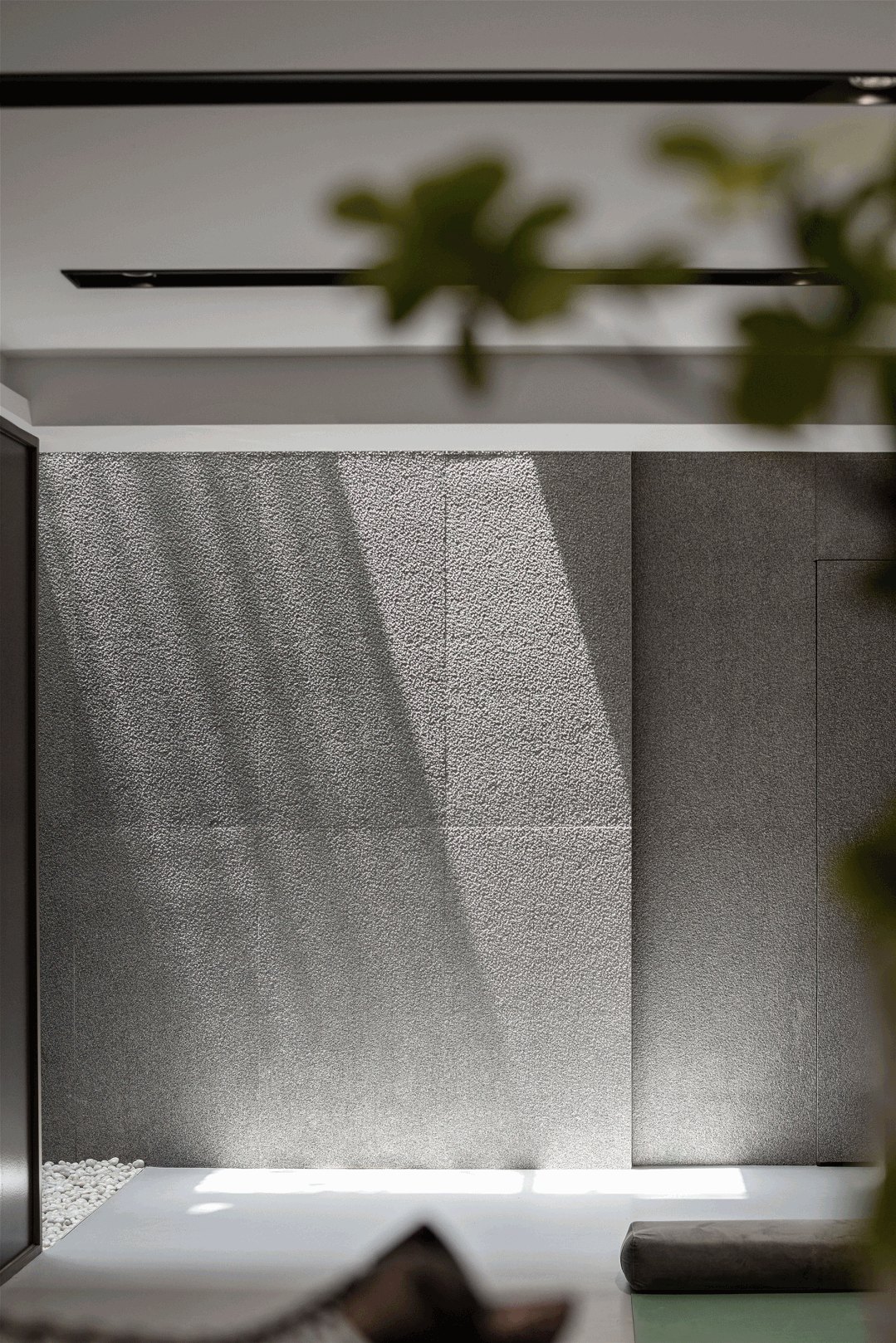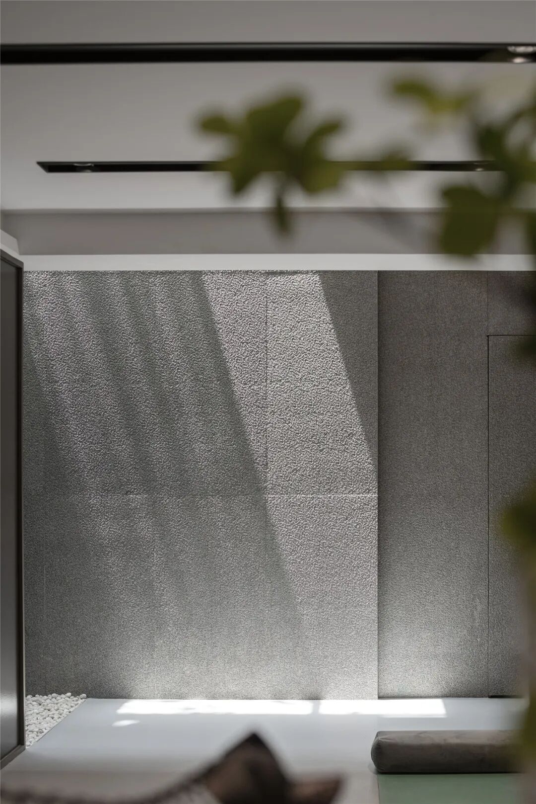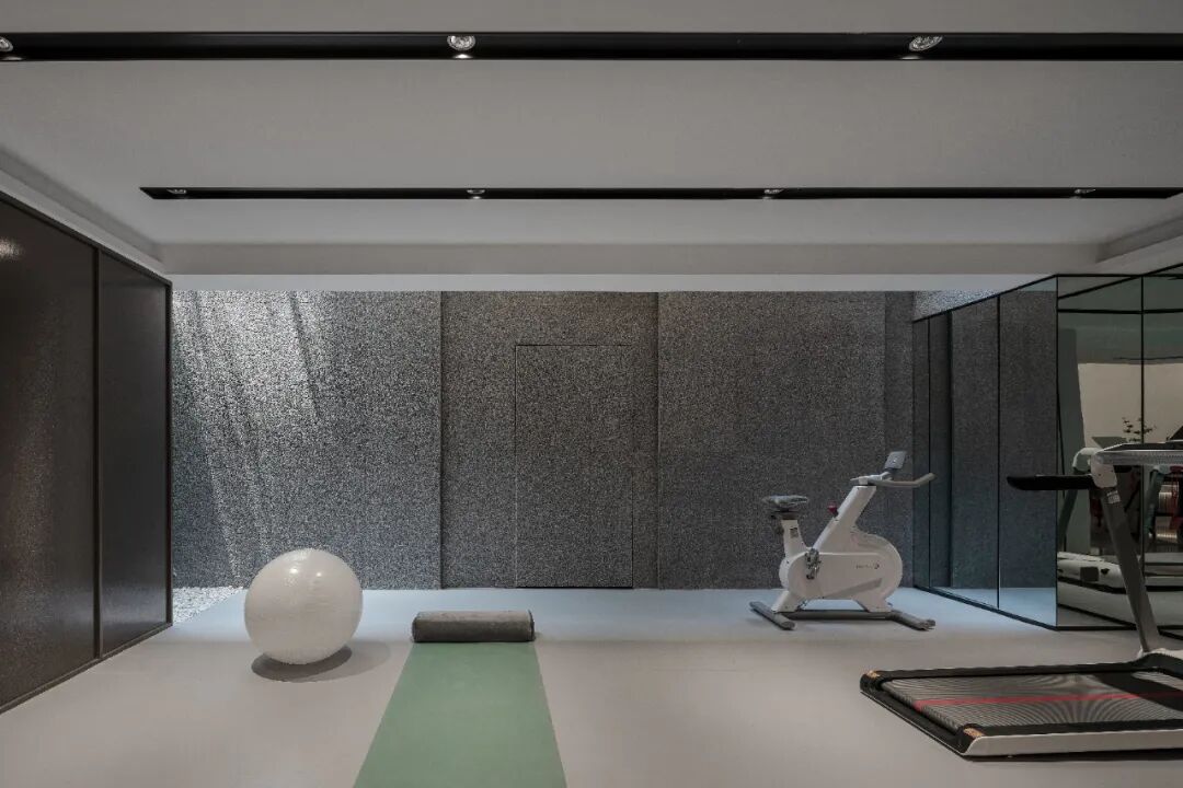 健身区通过天井引光影入室,交织出自然美学下的情愫交融,诗意了场域。层次化墙体设计,巧妙地丰富了视觉,赋予空间更丰富的表情。