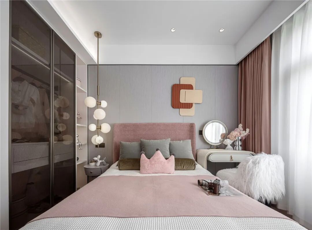 每个小女孩儿心中有着一个公主梦,女孩房以浪漫的粉色营造空间的梦幻柔美。公主皇冠造型抱枕,优美弧线的梳妆台,专属的衣帽柜等,满足女孩对生活的所有憧憬。