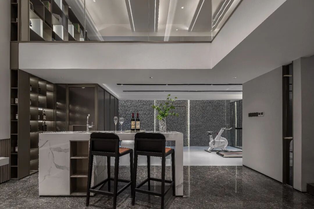 正如中村好文所说:“所谓住宅,必须是让人内心安稳地、丰富地、融洽地持续住下去的地方”。一个好的居所,应该是丰富的、容纳多种生活可能的。负一层结合度假社交娱乐需求,以私人派对模式进行空间布局,设置吧台、藏酒区、会客厅,健身房、棋牌室等,构筑开放多元的休闲娱乐场景,打造自在悦居的生活形态。