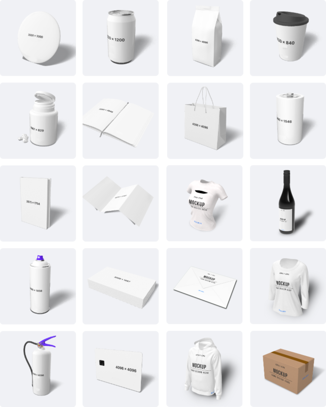 不仅如此,插件里还内置了许多种常见物品的样机模型,比如徽章、易拉罐、书本、三折页、纸袋、咖啡杯等等,完全可以用这些模型,更立体地展示你的周边设计作品。
