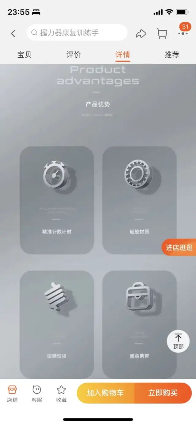 大家好,没想到现在详情页越来越卷了,之前很多详情页icon还是平面的,现在都是立体的了。