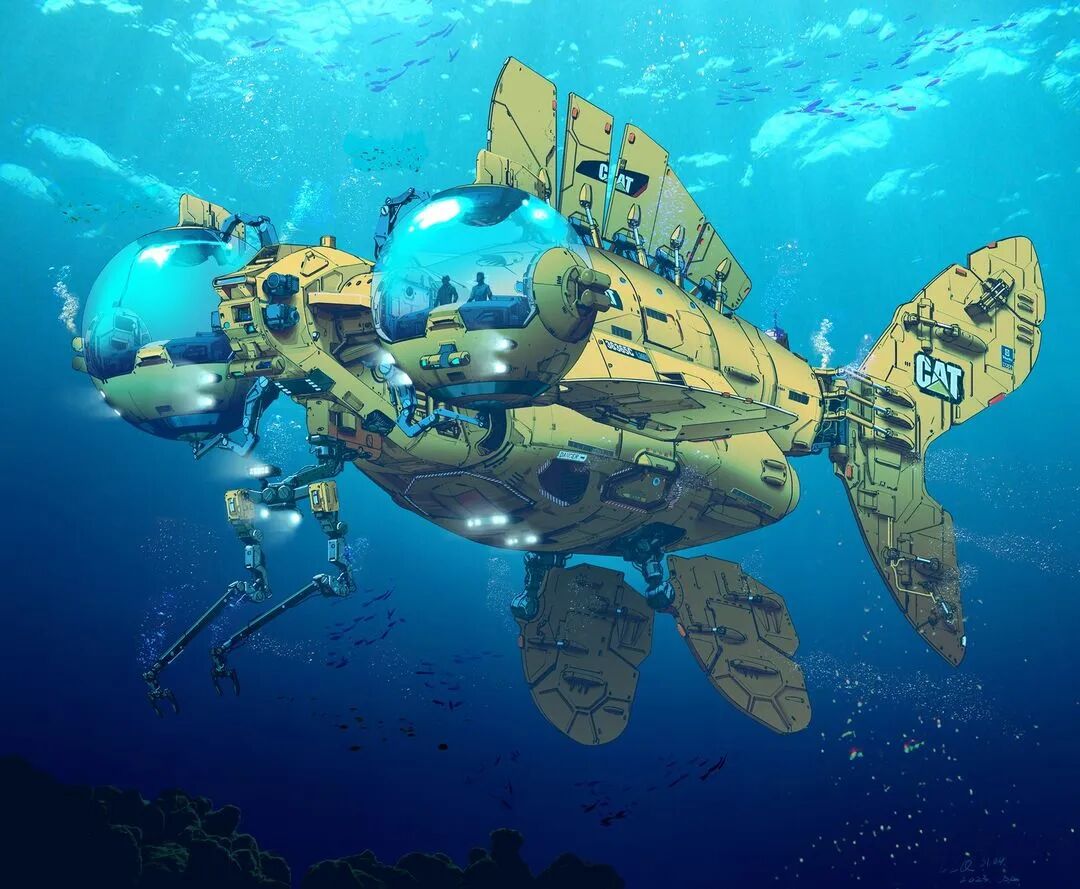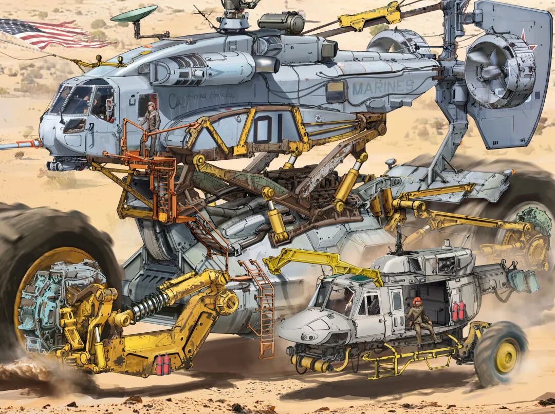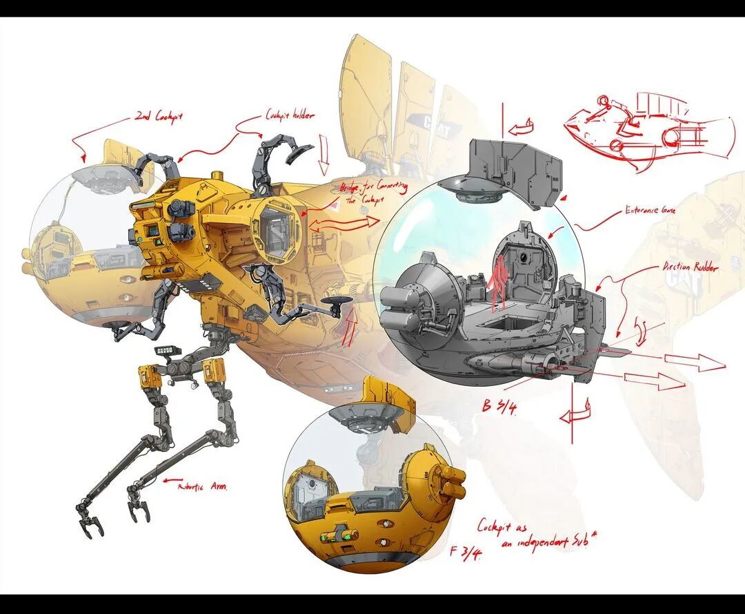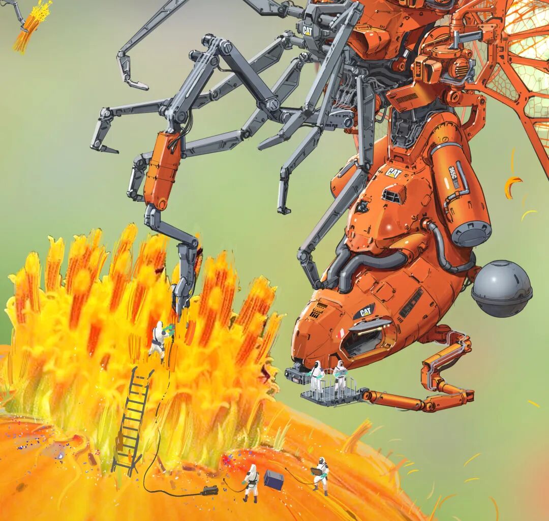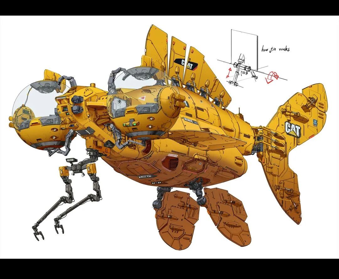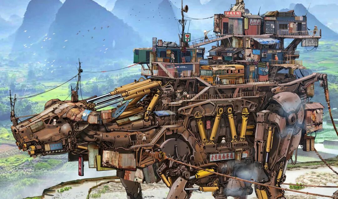 虽然脑洞很大,但他的作品在结构设计上却很合理,而且看起来还兼具一定的功能性,机械感十足。从局部图来看对于细节的刻画也非常细腻,让人惊叹于他扎实的绘画基本功以及对于整体设计的把控。