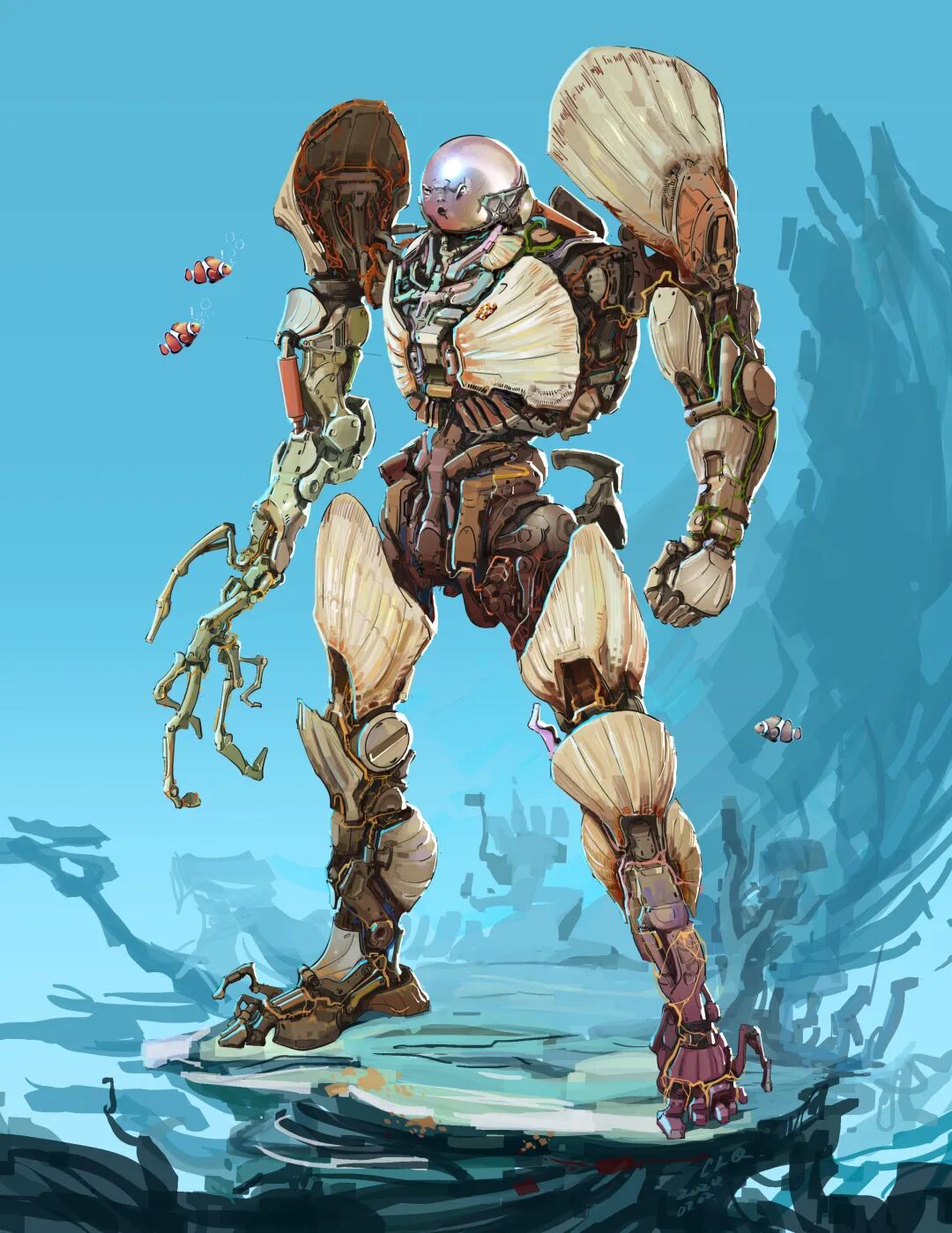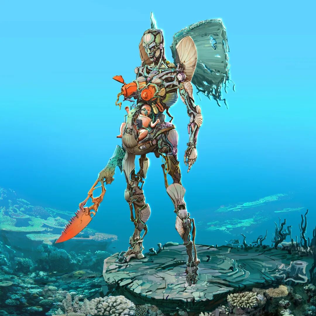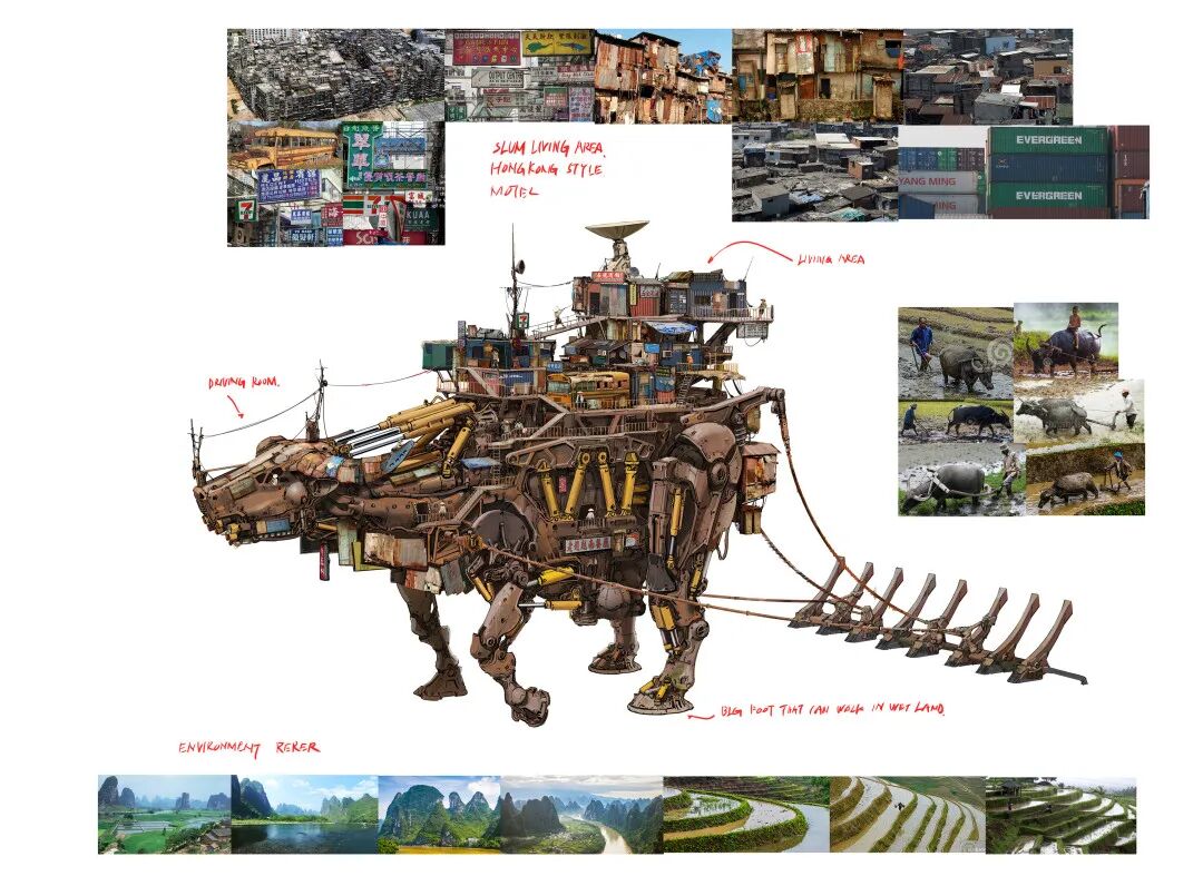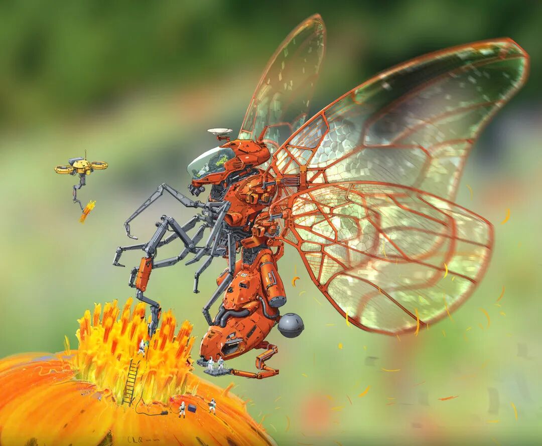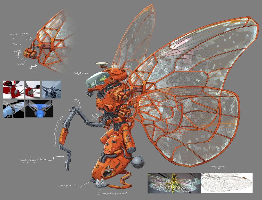 Longque Chen喜欢从现实世界当中提取借用各种自然界生物元素,再将其融入到他最擅长的机甲概念设计当中。