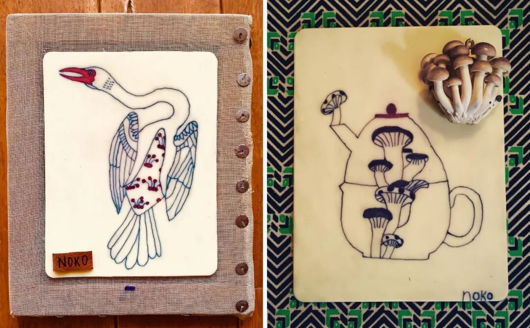 Noko最喜欢的艺术家是美国画家和博物学家John James Audubon,她常常参考看着他绘制的《美国鸟类》图鉴,再自己想象着画着自己的小画儿。