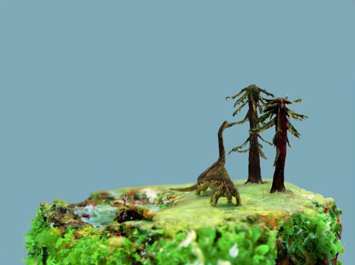 最近一段时间,玛丽创作了一个侏罗纪题材的微型雕塑作品,景观放大后,我们可以看到两只腕龙和两棵树的模样,为了让人们清楚这个雕塑的大小,玛丽还将一根铅笔放在旁边作为参照物,这根铅笔高5毫米,宽2毫米,雕塑中的腕龙仅仅只有4毫米长,你以为光是这样就完了吗?