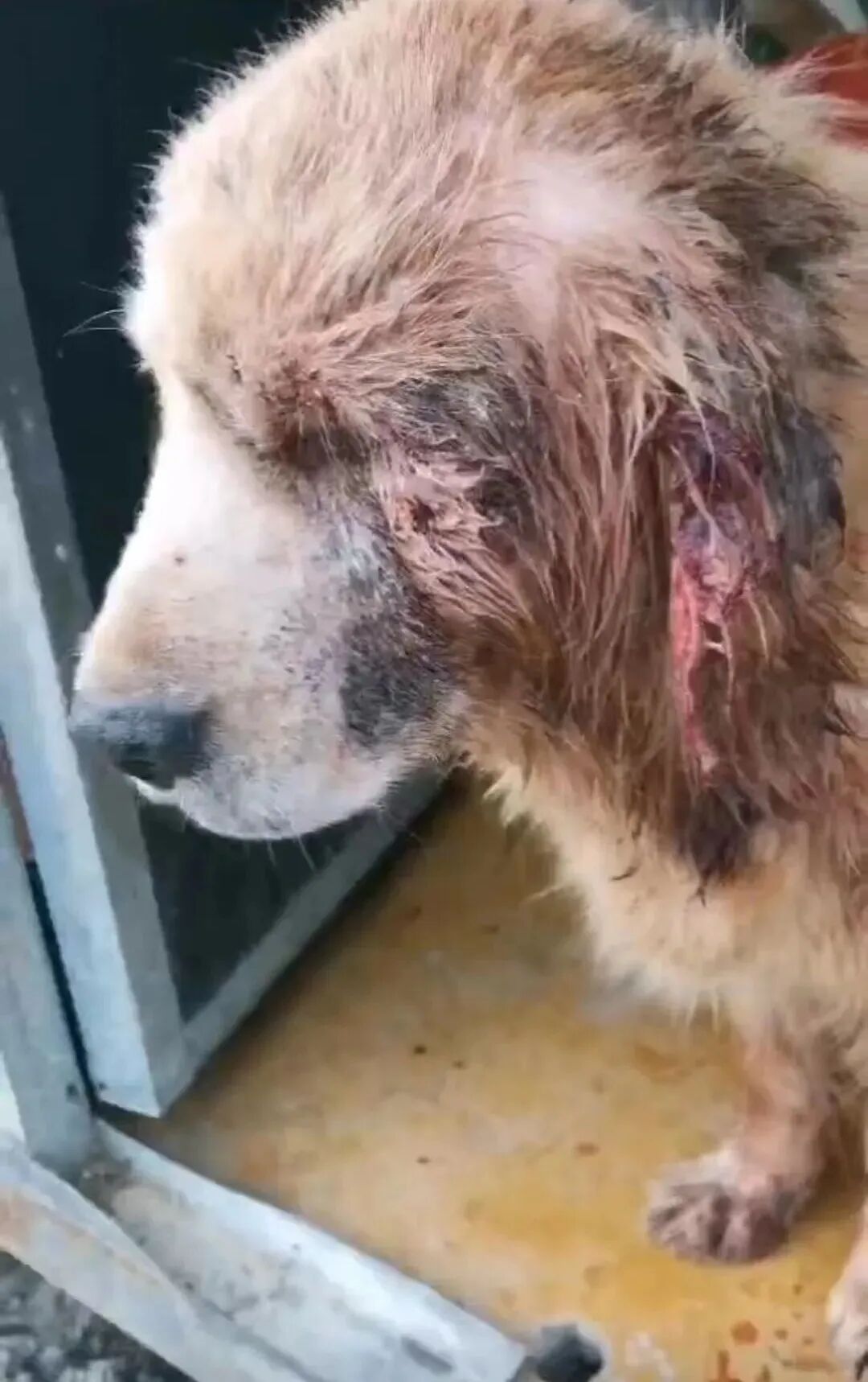 基地里憨厚的金毛,被人虐打的满脸是血差点瞎了眼睛,精神状态异常低迷。