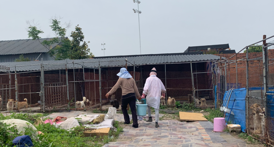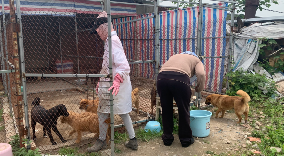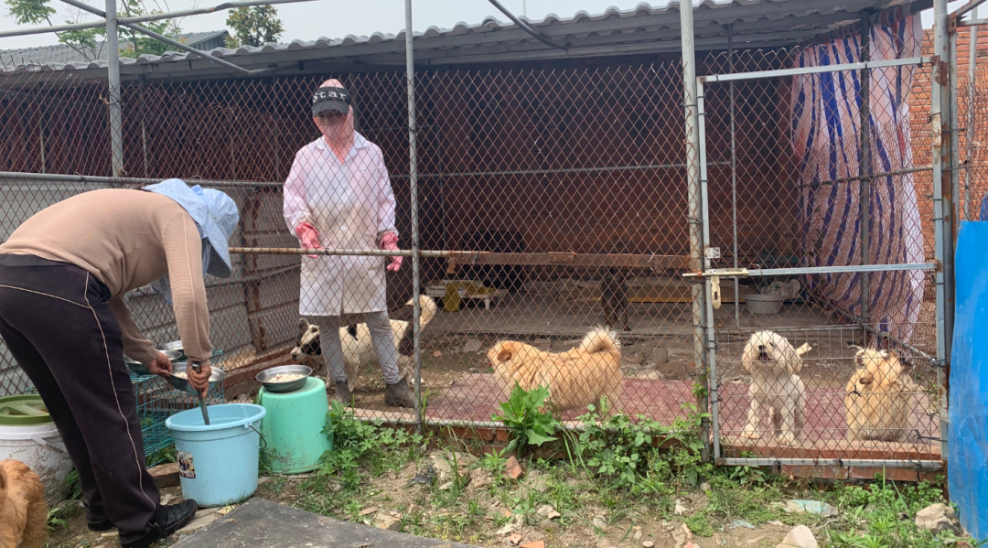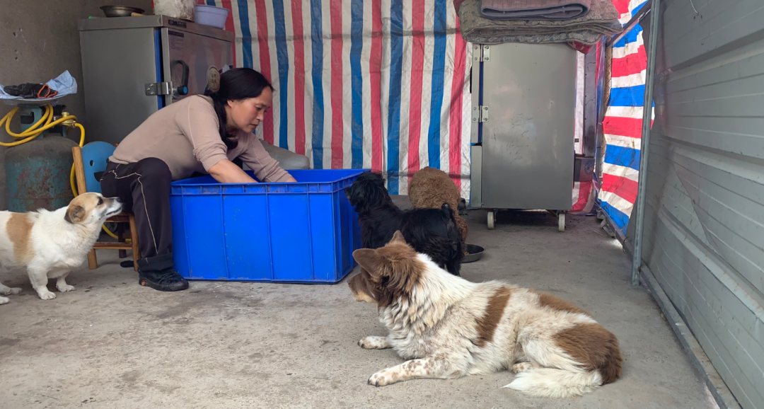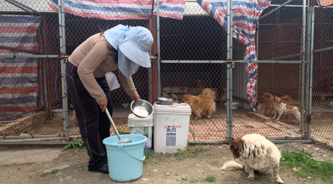 △基地里忙碌的陈阿姨和她妹妹终日在院里照看毛孩子们