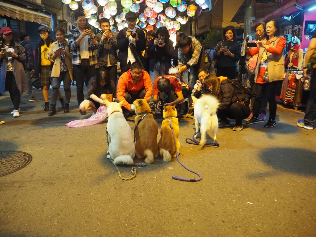 普济府城灯会以赏灯为主,摊贩不多,但沿途可见饲主把家中爱犬拎上街头排排坐,惹得看客纷纷拍照;
