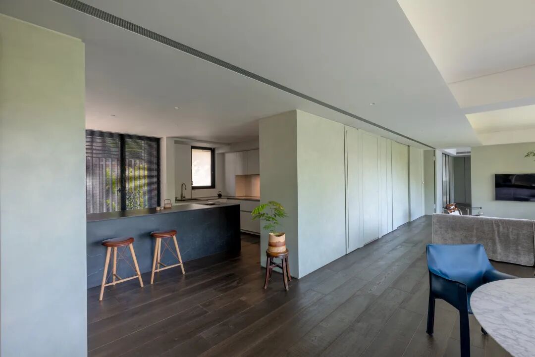本案长型基地一侧拥有连贯窗景和带状露台,熟悉山林的屋主迁至市郊生活仍择邻近故宫、一处有山有溪的住所,希望自然曾经带给他们的情怀能在此继续生长。