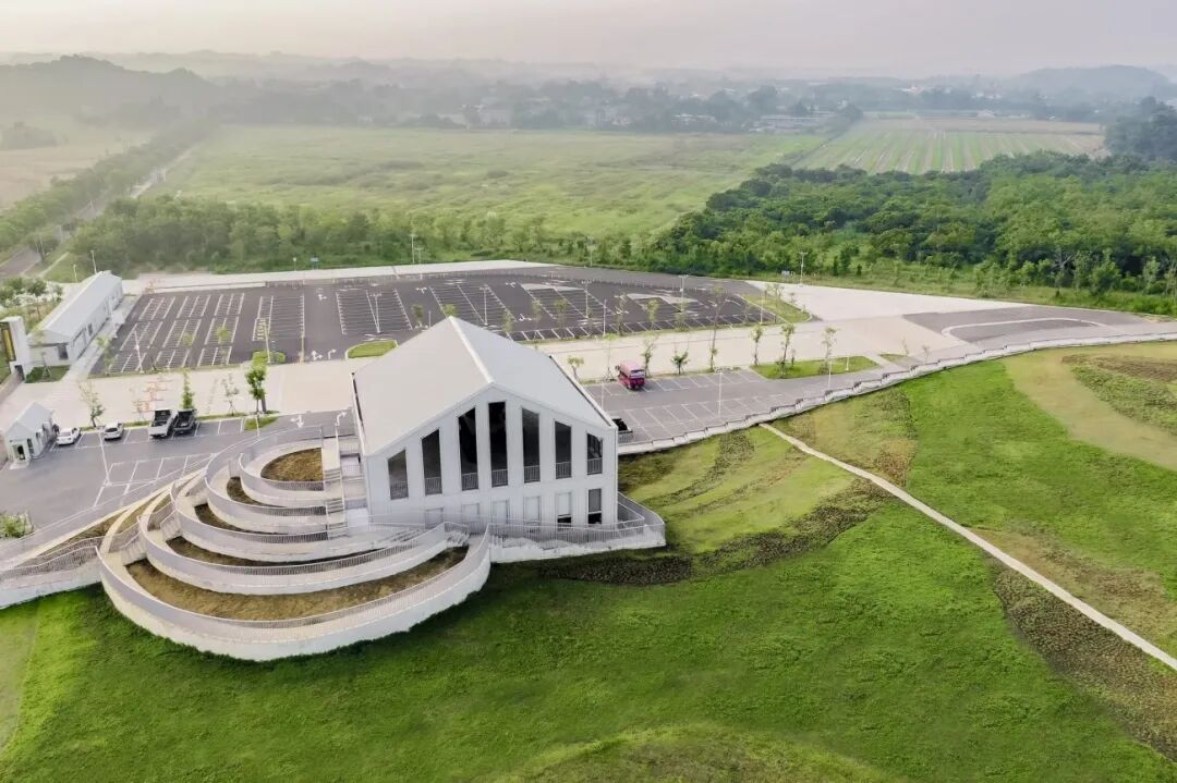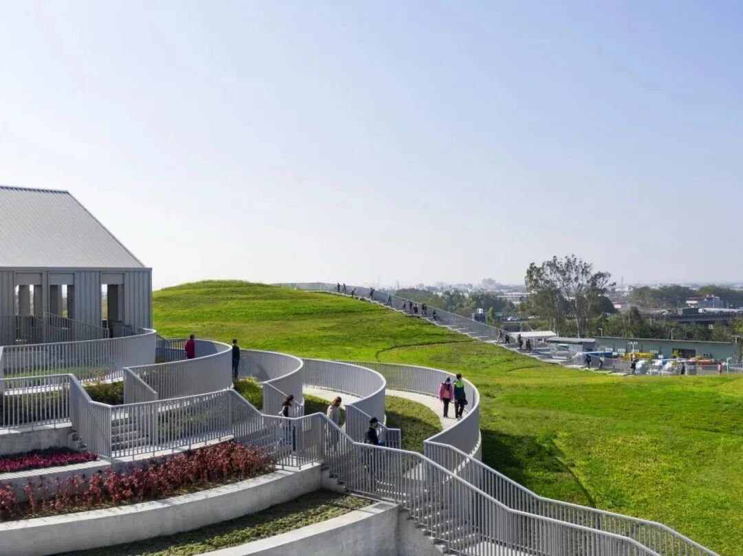 建筑呈现一个简单的开放式结构,带有起伏的绿色屋顶形成延绵的山丘。屋顶的东侧角落种植着一片五颜六色的植物和花卉的梯田,这座屋顶一直延伸到地面,使游客可以轻松到达建筑的顶部。因此,这座建筑成为了一个高架平台,游客可以从这个平台上欣赏台湾这一地区的景观,而这座建筑创造了这一景观的延续性。建筑的一侧是一个简单的四层结构,包括市场的行政办公室和一个展示中心,可以展示该地区的农产品。这座四层楼的建筑穿透了主体结构,提供了通往屋顶的二级通道。