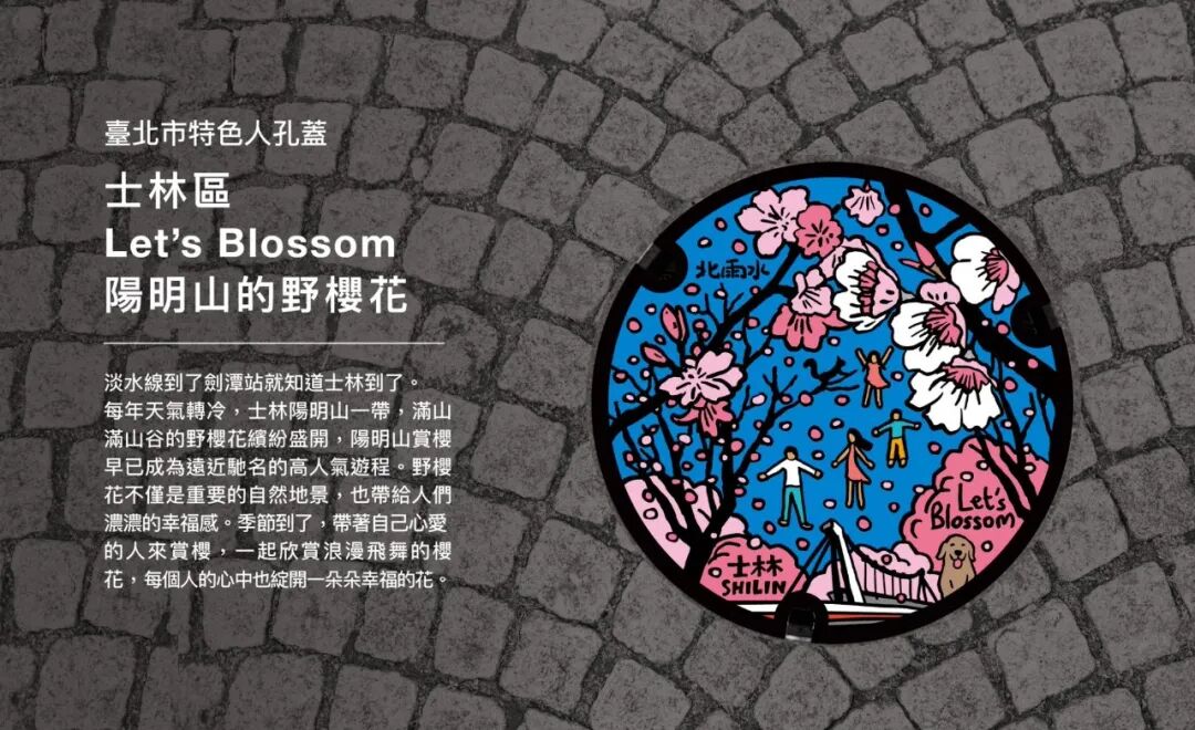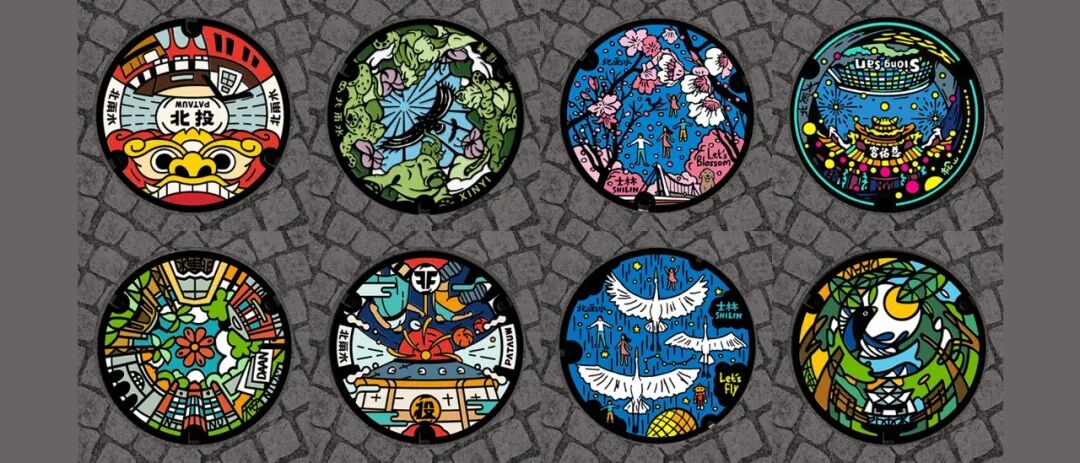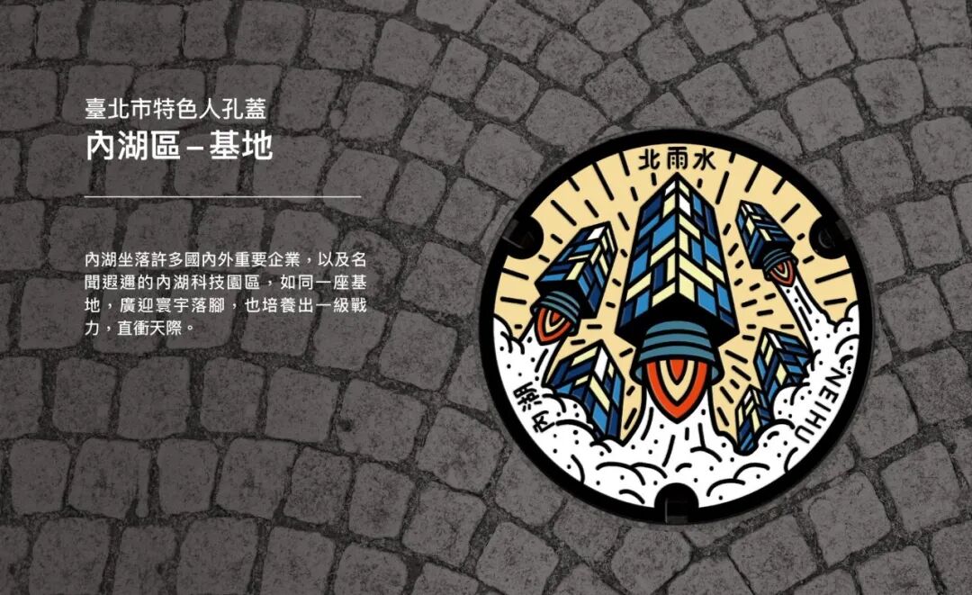 台北市政府水利处为了将井盖融入地方特色推出「台北盖水」计划。共邀来8位设计师,分别在北投区、士林区、中山区、松山区、内湖区、信义区、大安区、文山区8个区,打造16款特色井盖,让人们能在行走或是旅行的过程中留意脚下风景。