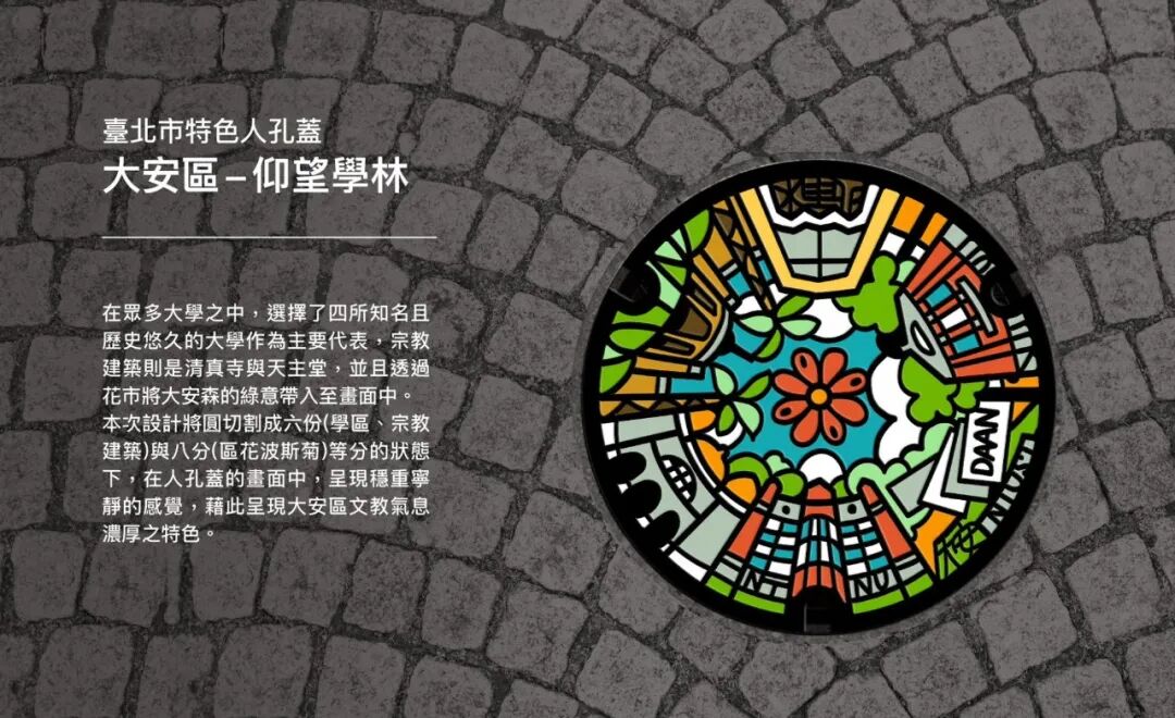 台北盖水16款最新特色井盖,预计将在今年9月底前完成安装,同时,还将推出彩色井盖杯垫周边。