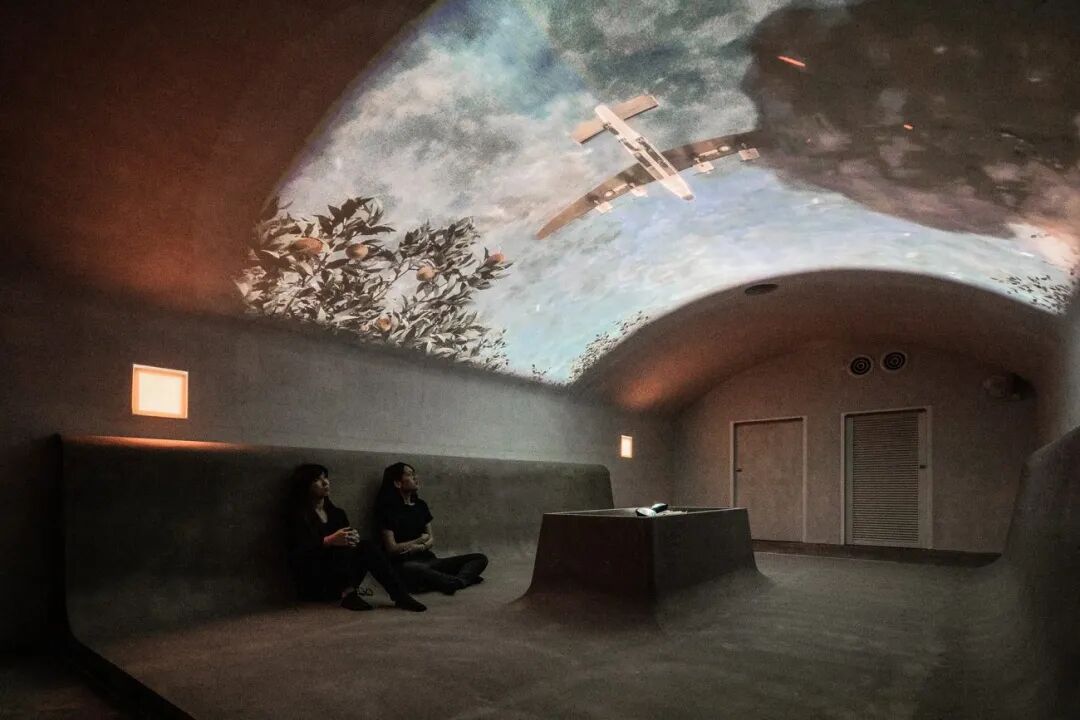 将大碉堡分为VR及MR空间,VR空间让人们以虚拟实境的方式进入到二战时使用摩斯密码进行通讯设备,而MR空间让人们席地倚坐两侧,将动画投射在拱型天花板,既有建筑形态成为新的影像平台,能有虚拟和真实两种模式的感官体验。