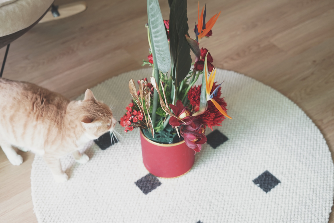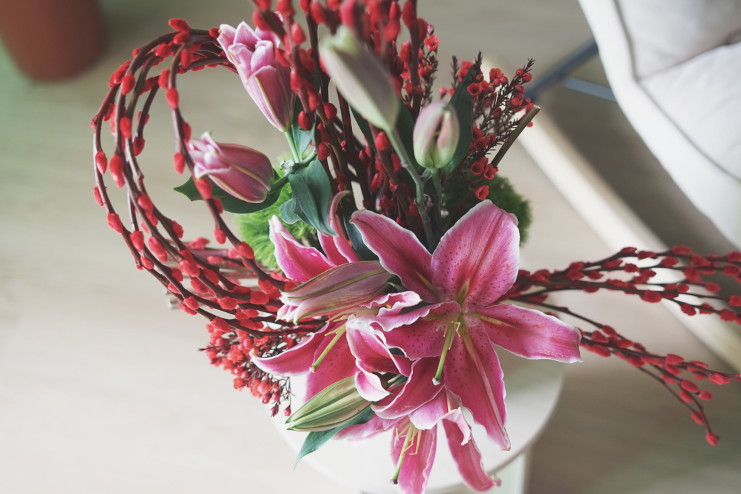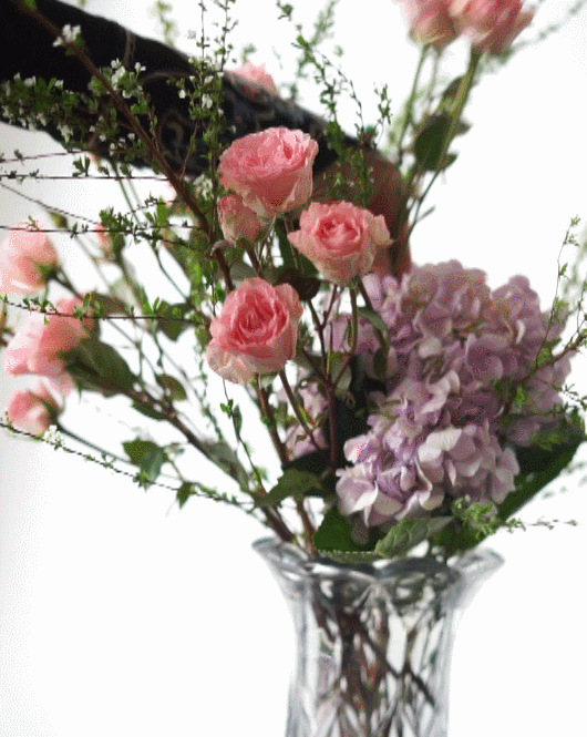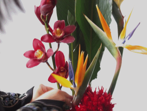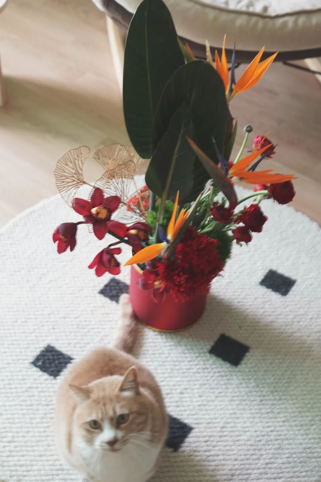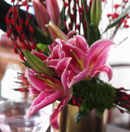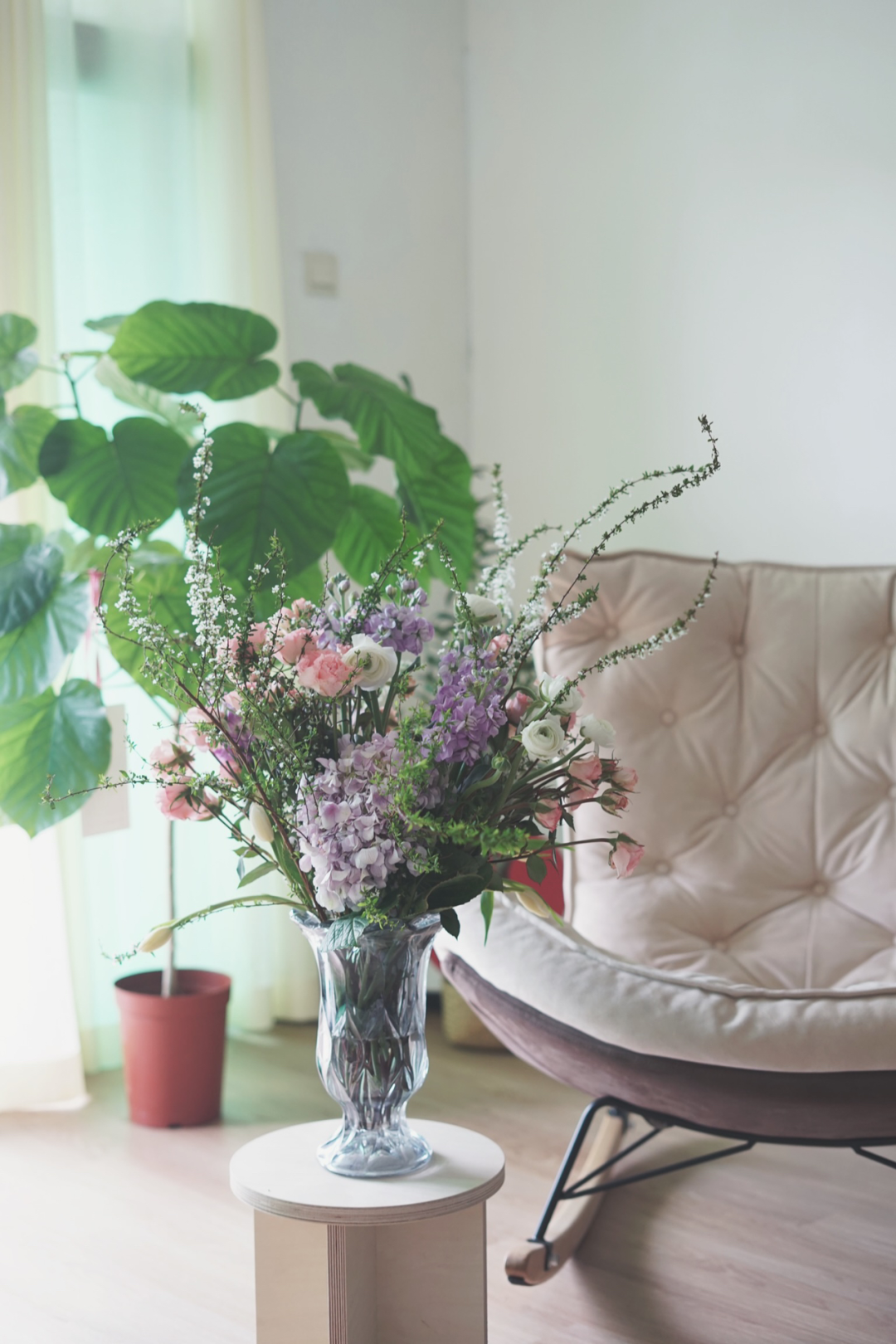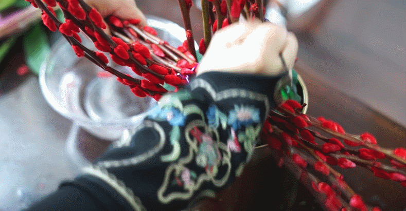 3、插好的花需要保鲜,才能从初一开到初七,花泥一开始已经吸满了水,三四天后再往里面加一点水补充即可,水插的话,可以提前往水里加一包可利鲜。