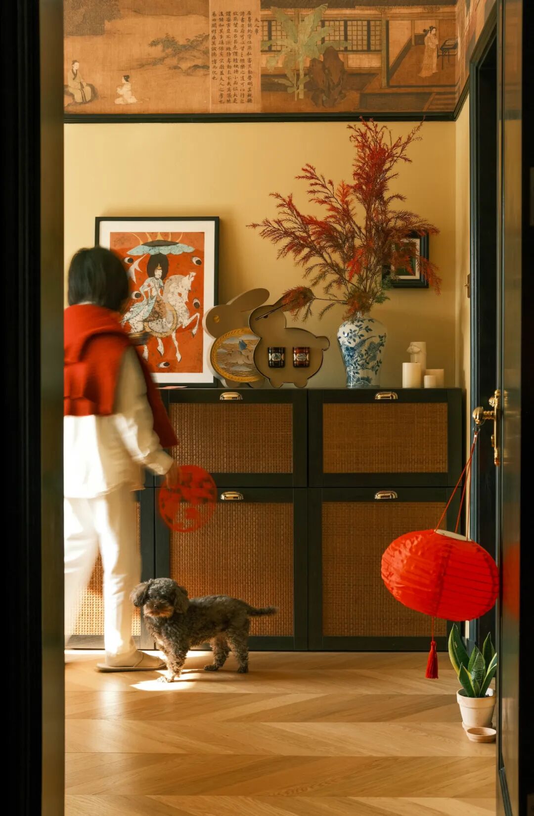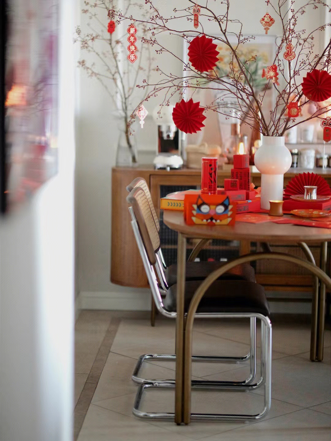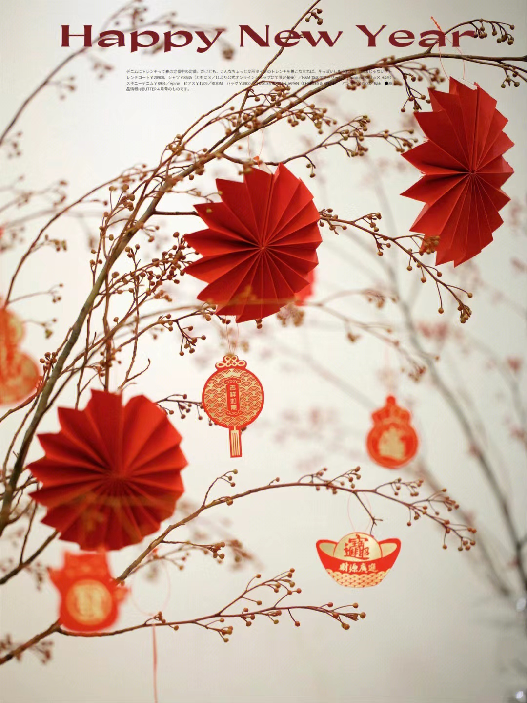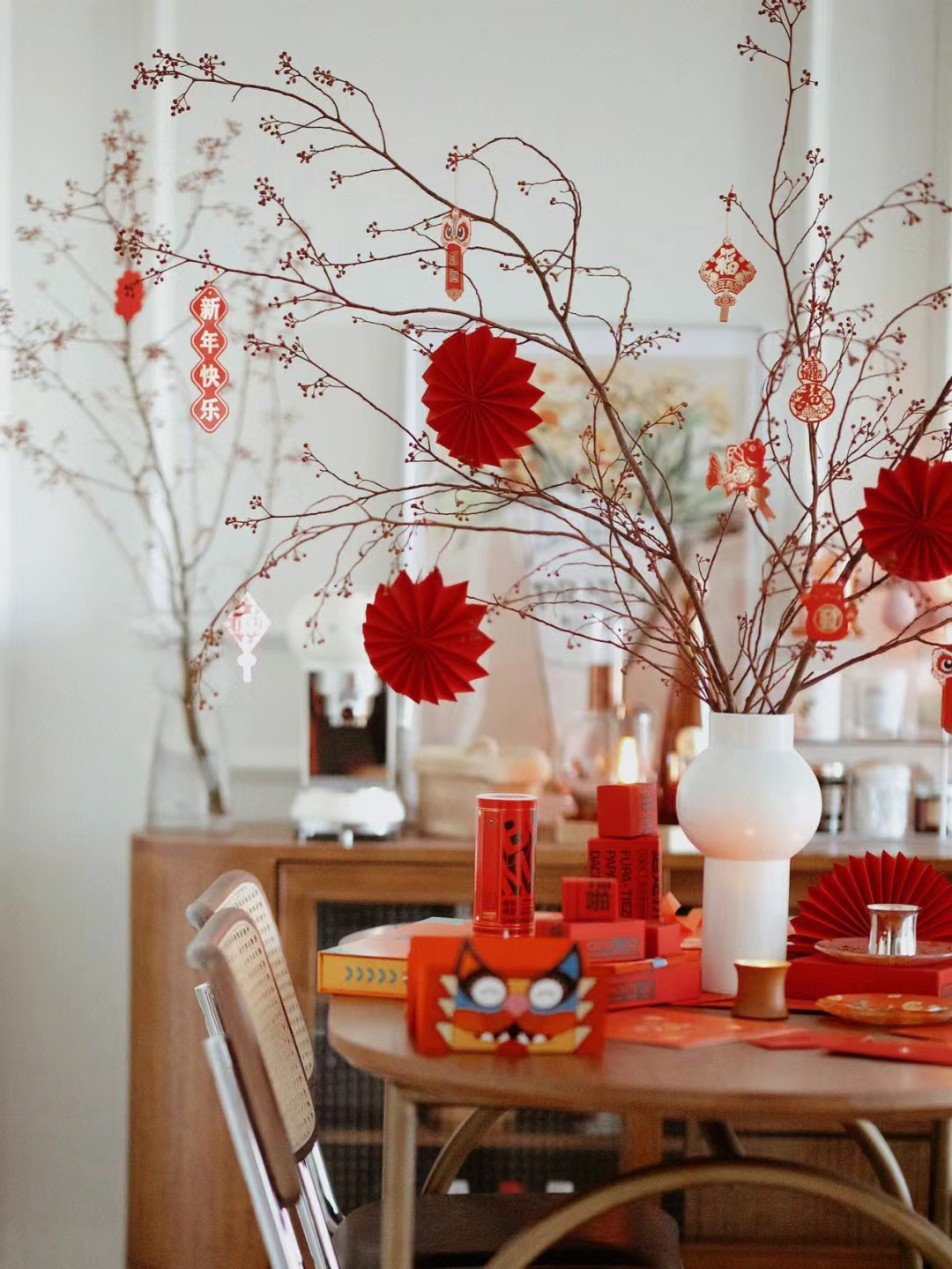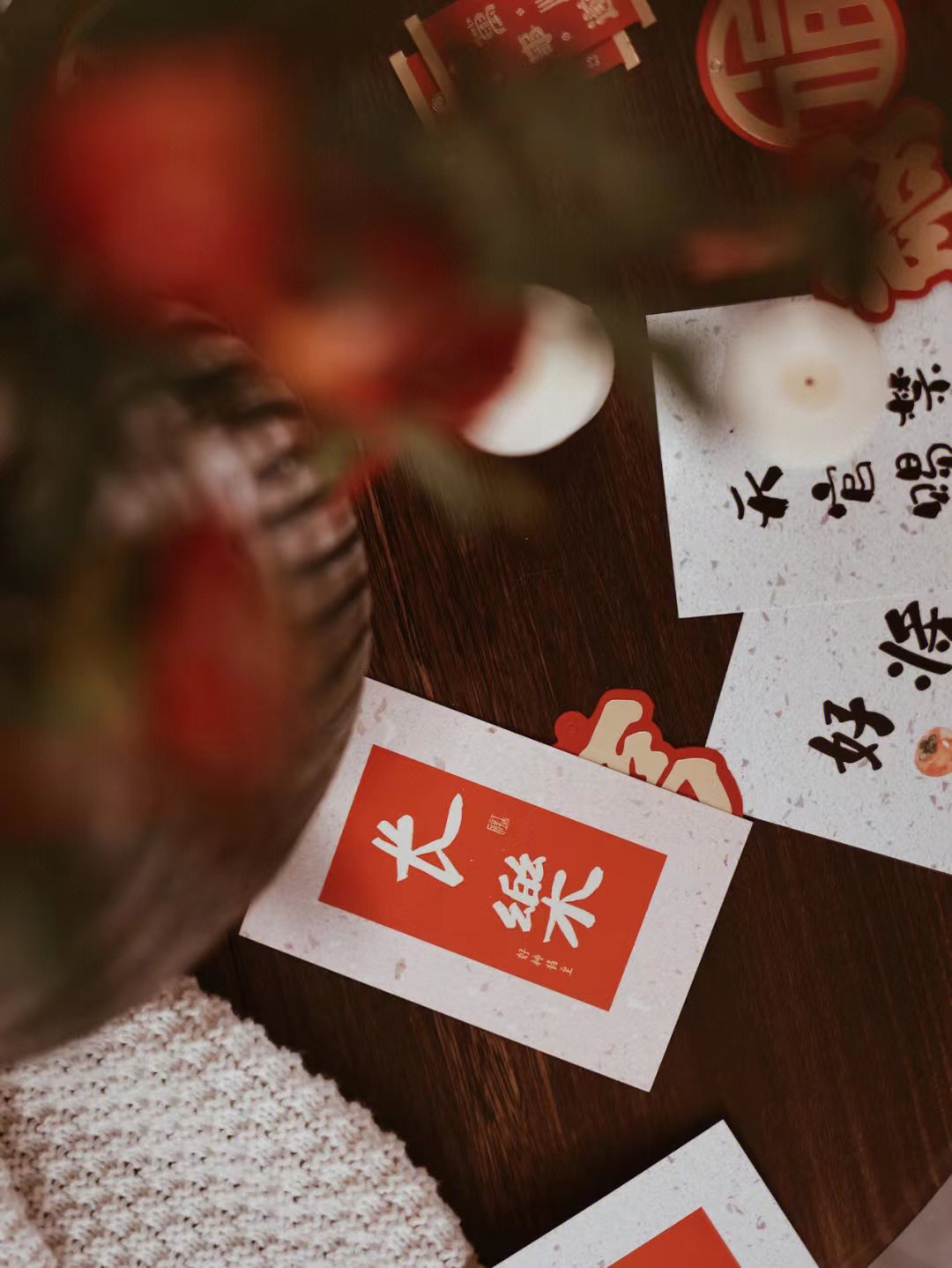 再适当挂上一些小卡片,买卡片的时候要注意看字体设计,好看的字体不会显得土气,喜庆又高级。