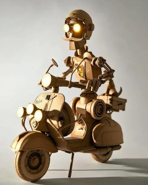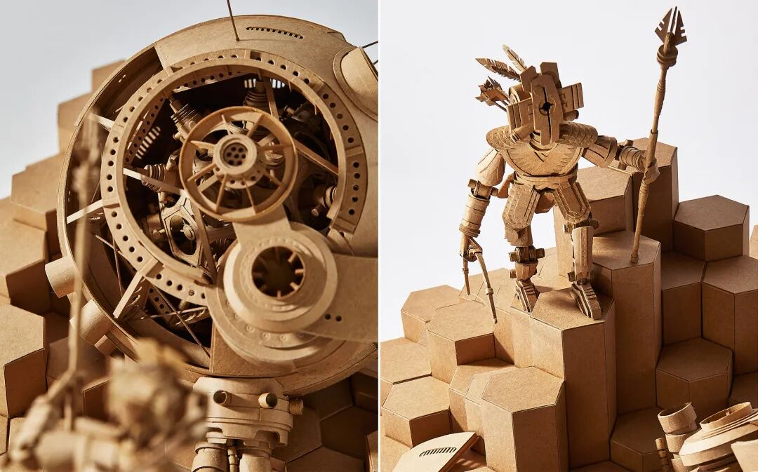 格雷戈·奥利尼尼克是一位想象力非丰富的艺术家,他的脑子里总是有一些天马行空、不切实际的画面,尤其是心里的科幻情节,总是会不由自主地跑出来,于是这位艺术家开始着手哦,将自己脑子里的想法,真实地呈现出来。蜻蜓直升机、超大机器人、有着复杂台阶的不规则建筑物......都在艺术家的一双灵活的双手之下,通过对纸板折叠、黏合而呈现出来。