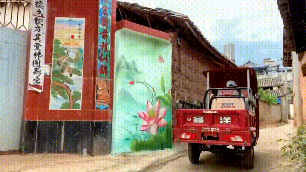 一开始,他刚到家乡的时候,村民们听说有人要在自己家的墙上画画,心里很抗拒,为了打消村民们的疑虑,他就从自家的老宅子着手,经过4天的改造,原本破败的墙面上出现了一幅色彩斑斓的画。