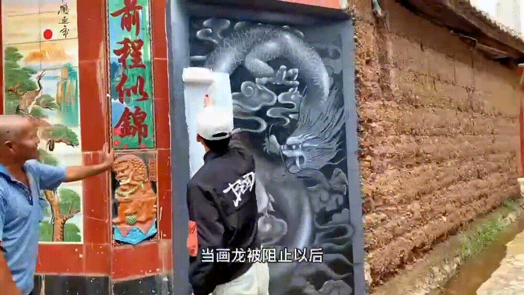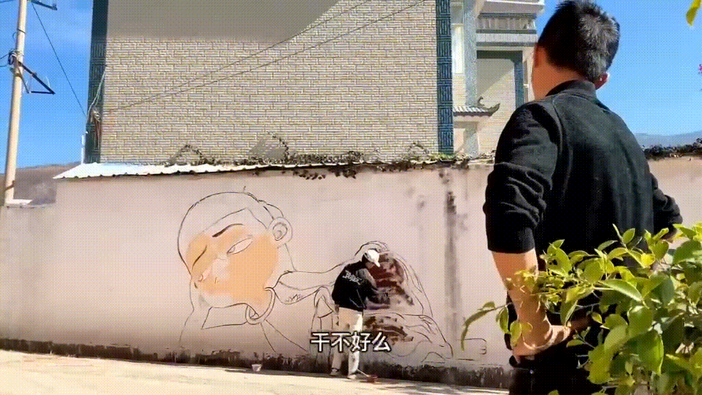 看他画得不错,邻居的大爷心动了,让他画一下自家的墙面。