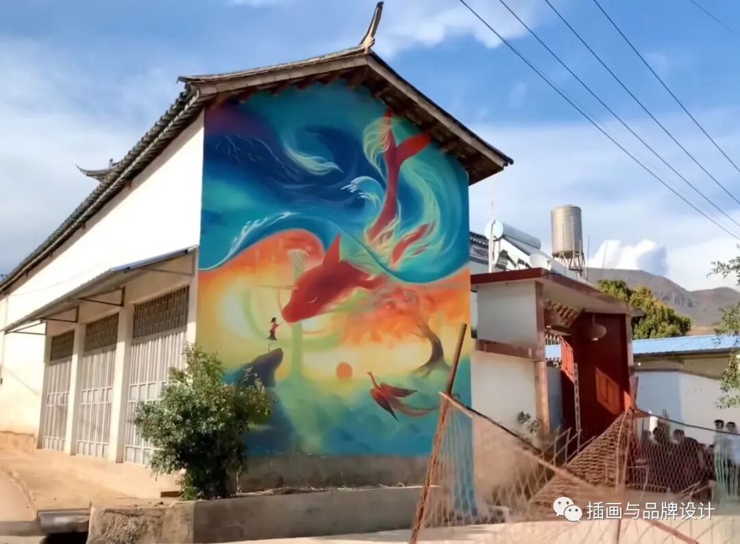 他的壁画也吸引了不少游客前来“打卡”,借助一支画笔把普普通通的小村庄变成了打卡地,不仅如此,还被央视新闻点名表扬。