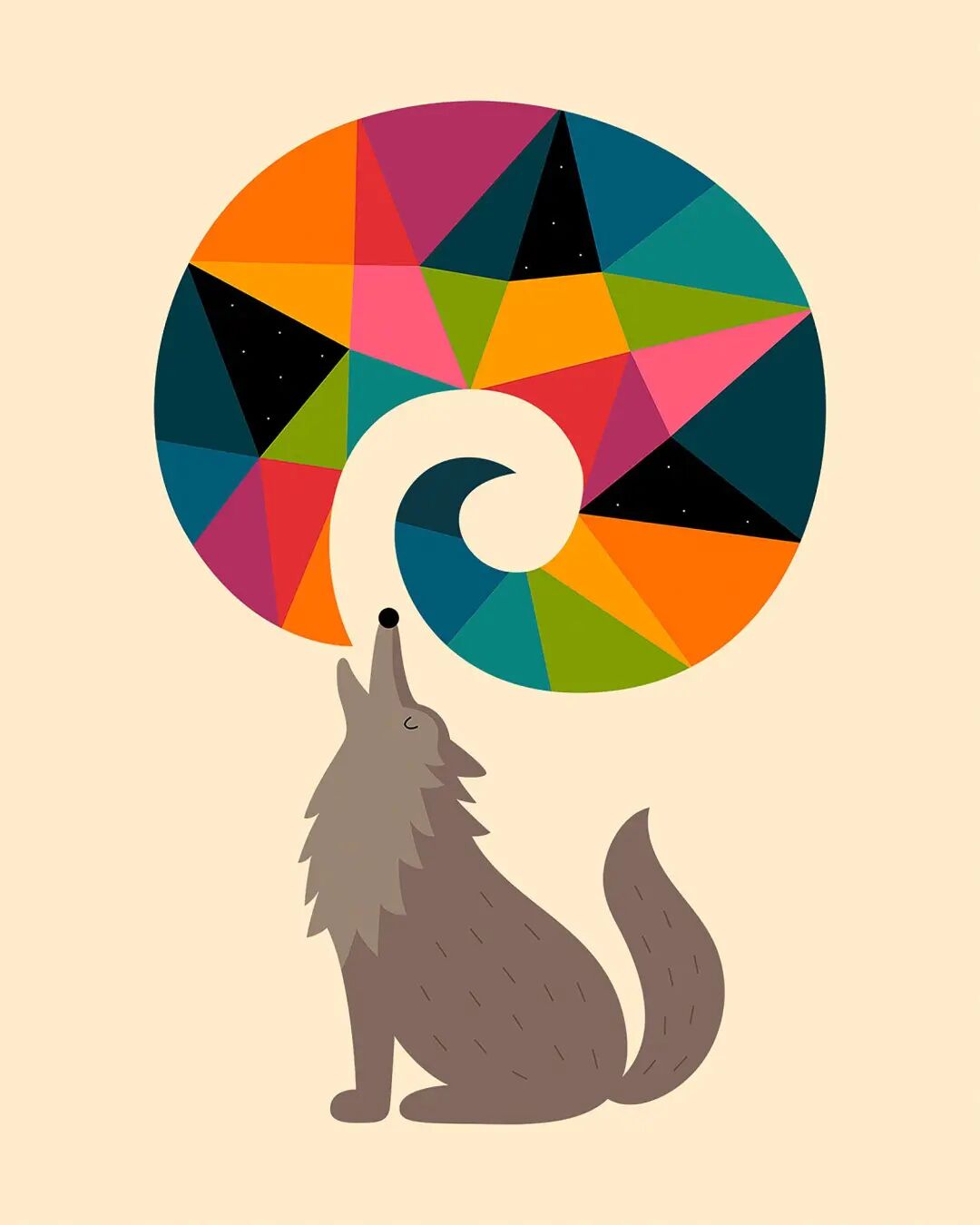 看到他的描述,我们从中也清晰地知道了,这位插画家的创作以动物题材为主,利用彩虹的色彩去描绘作品,彩虹的七种颜色都很好看,不过,要让它们和谐地在一幅作品中,对于许多插画家来说都是一种挑战,因为在一幅画面中同时存在多种色彩,会给人的视觉上带来一种“乱”和“花”的感觉,需要巧妙布局和安排,才能创作出均衡适合的作品。