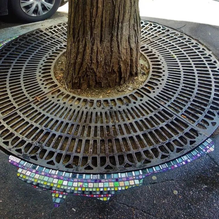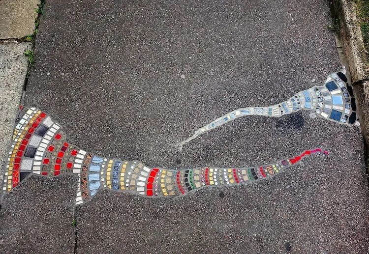 从大坑洼到鹅卵石小路,在这些难看的碎片或裂缝中,这位艺术家施展了化腐朽为神奇的“魔力”,用色彩缤纷的设计,将它们填满,形成美丽的马赛克图案。为了达到自己想要的美学,埃梅姆使用了一些独特的陶瓷、木材和沥青来作为材料,填充这些小小的空间。