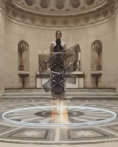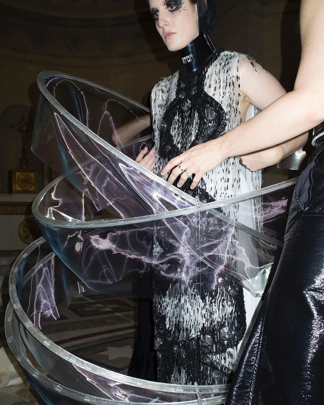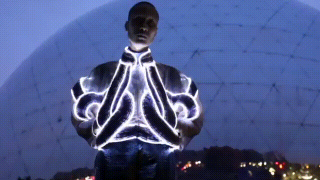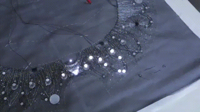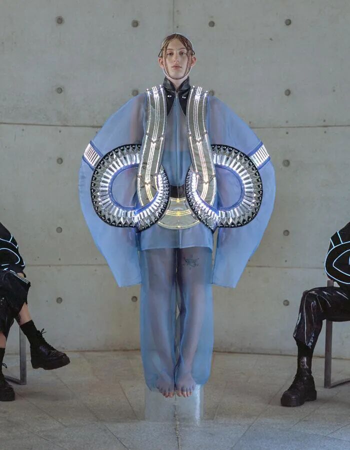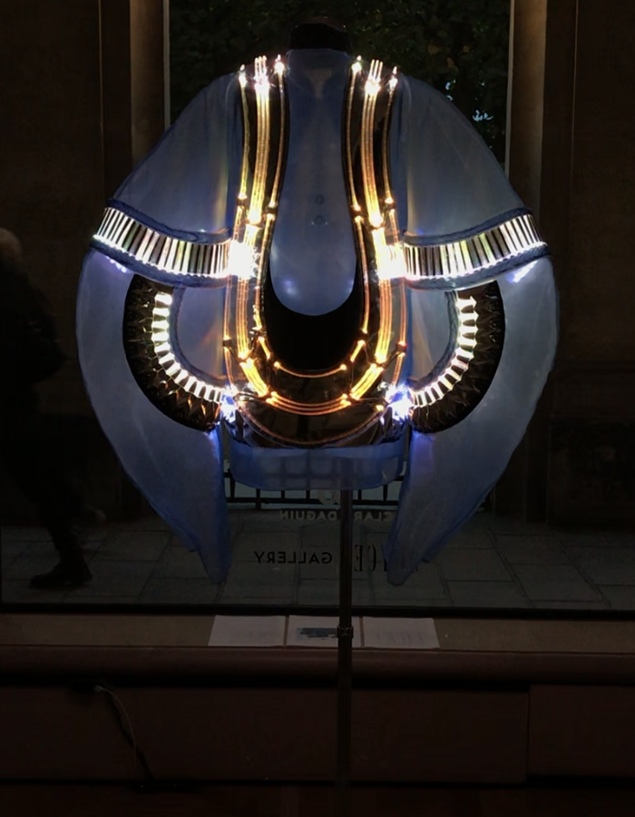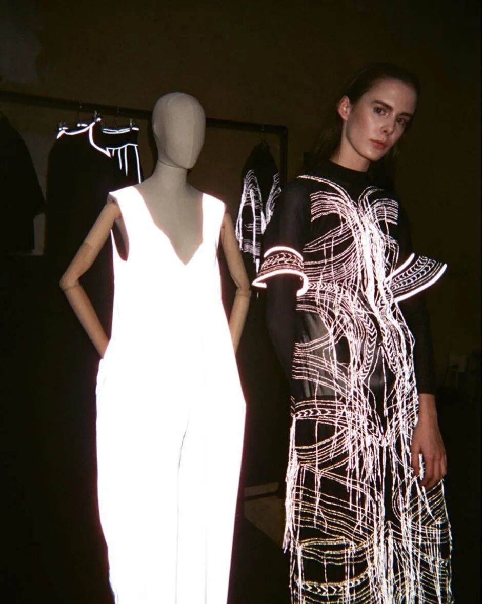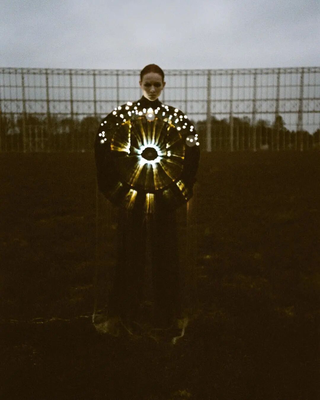 使用时尚作为媒介,可以让人类的身体在技术不断发展的关系中发挥核心作用。同时,"光"的作用唤起了Clara Daguin 无限的灵感概念,她从中获得启发,并以人体与服装之间的交互实验作为着力点,创作了充满未来概念的科技时装艺术作品。
