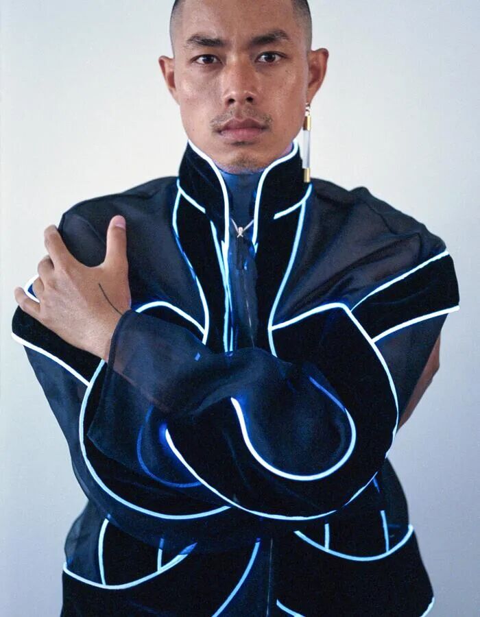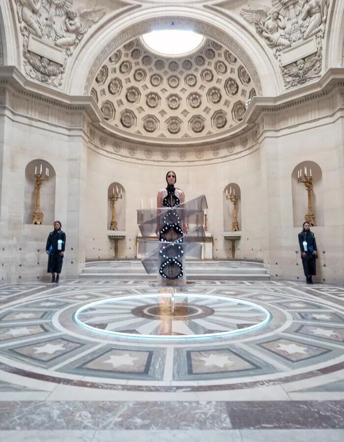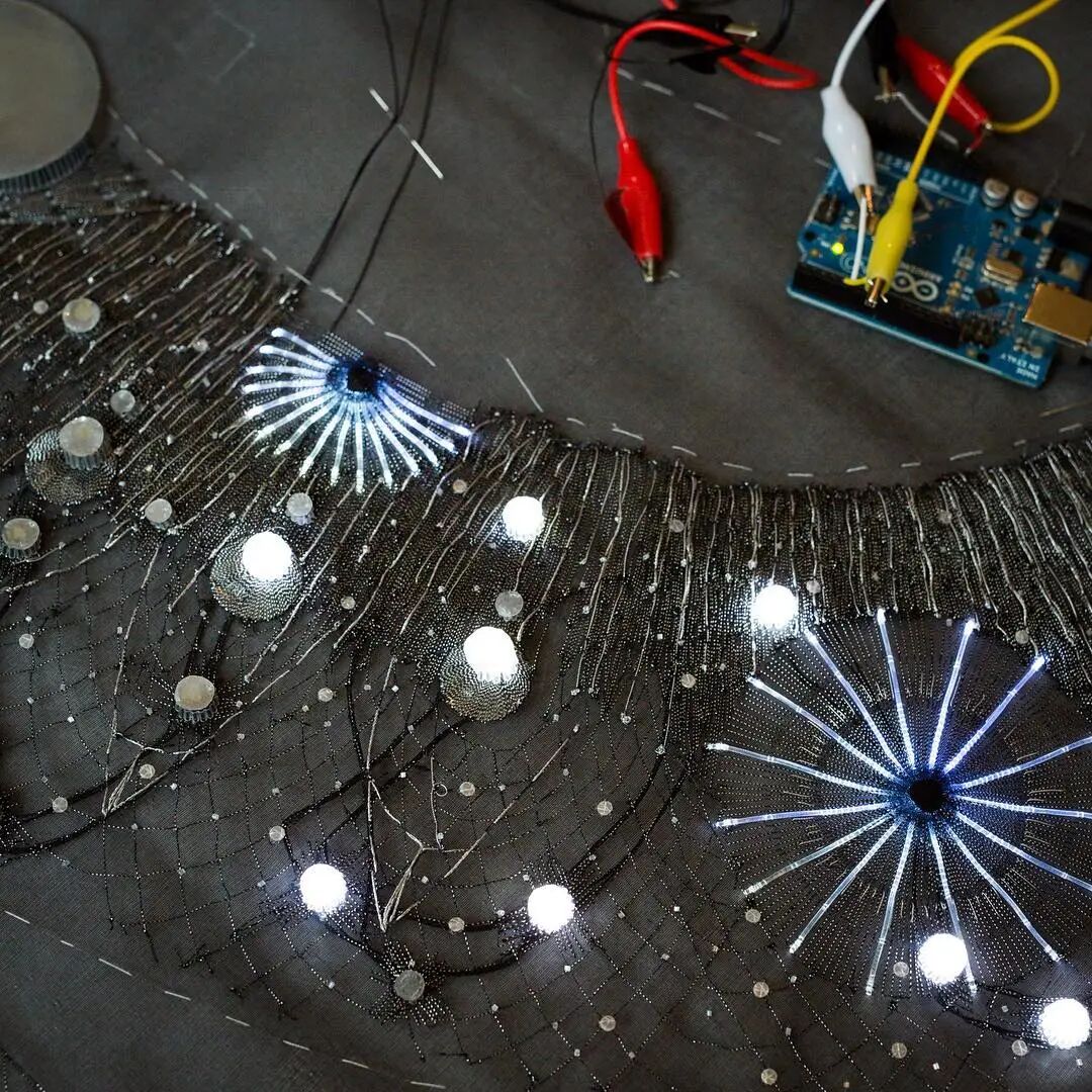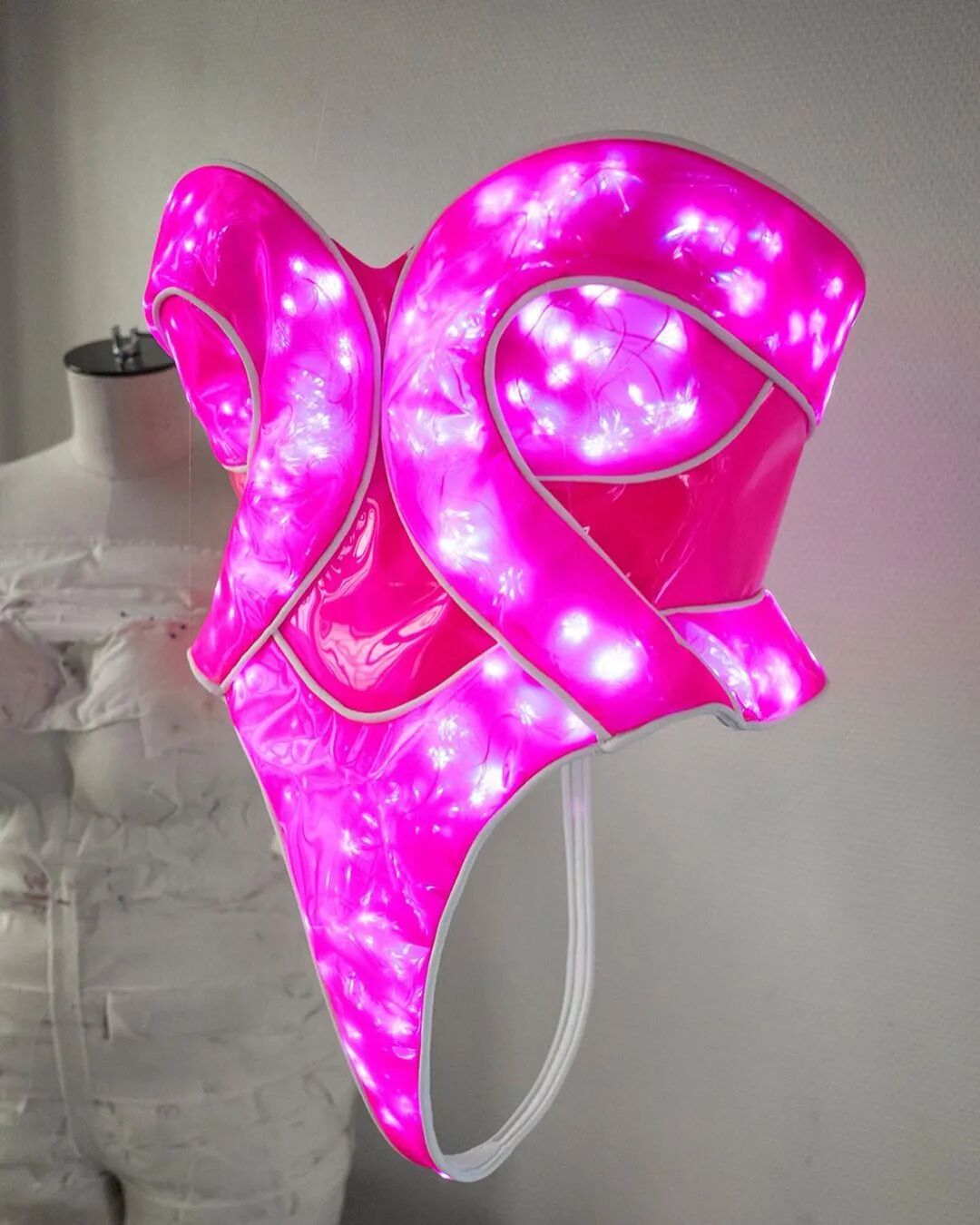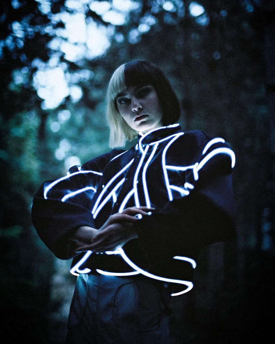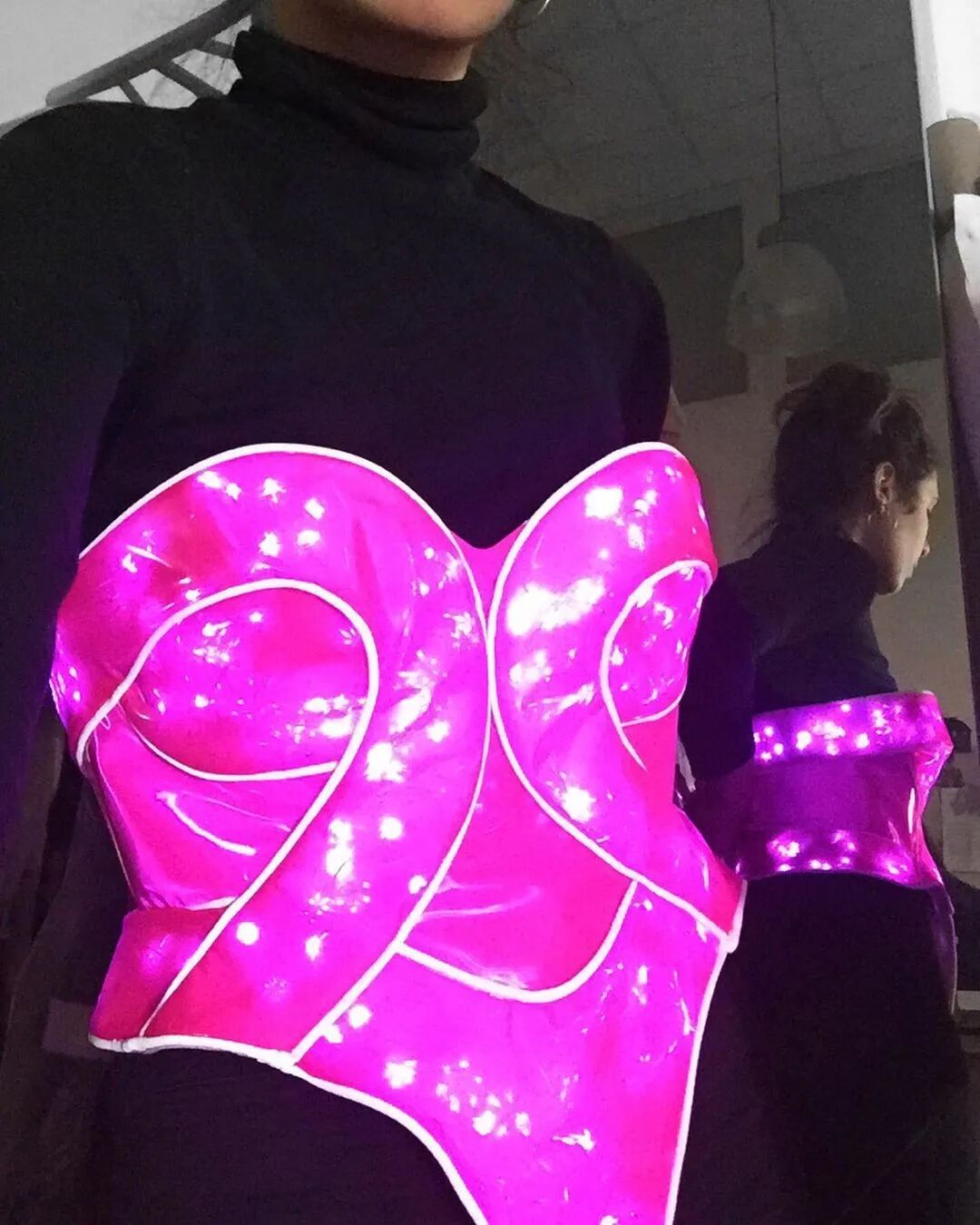 使用时尚作为媒介,可以让人类的身体在技术不断发展的关系中发挥核心作用。同时,"光"的作用唤起了Clara Daguin 无限的灵感概念,她从中获得启发,并以人体与服装之间的交互实验作为着力点,创作了充满未来概念的科技时装艺术作品。